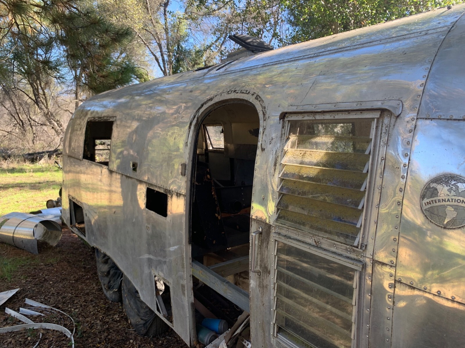 Started down the road of a full remodel, fully gutted, all new water, gray and black tanks, new sub floor, all new aluminum for repair panels. and new tires and rims off of 2014 airstream. Clean and registration good till 2027. Ca trailer. This trailer has solid bones and is ready for someone to restore. Has solid tires and axles can be towed if in CA. Buyer to Pay shipping.