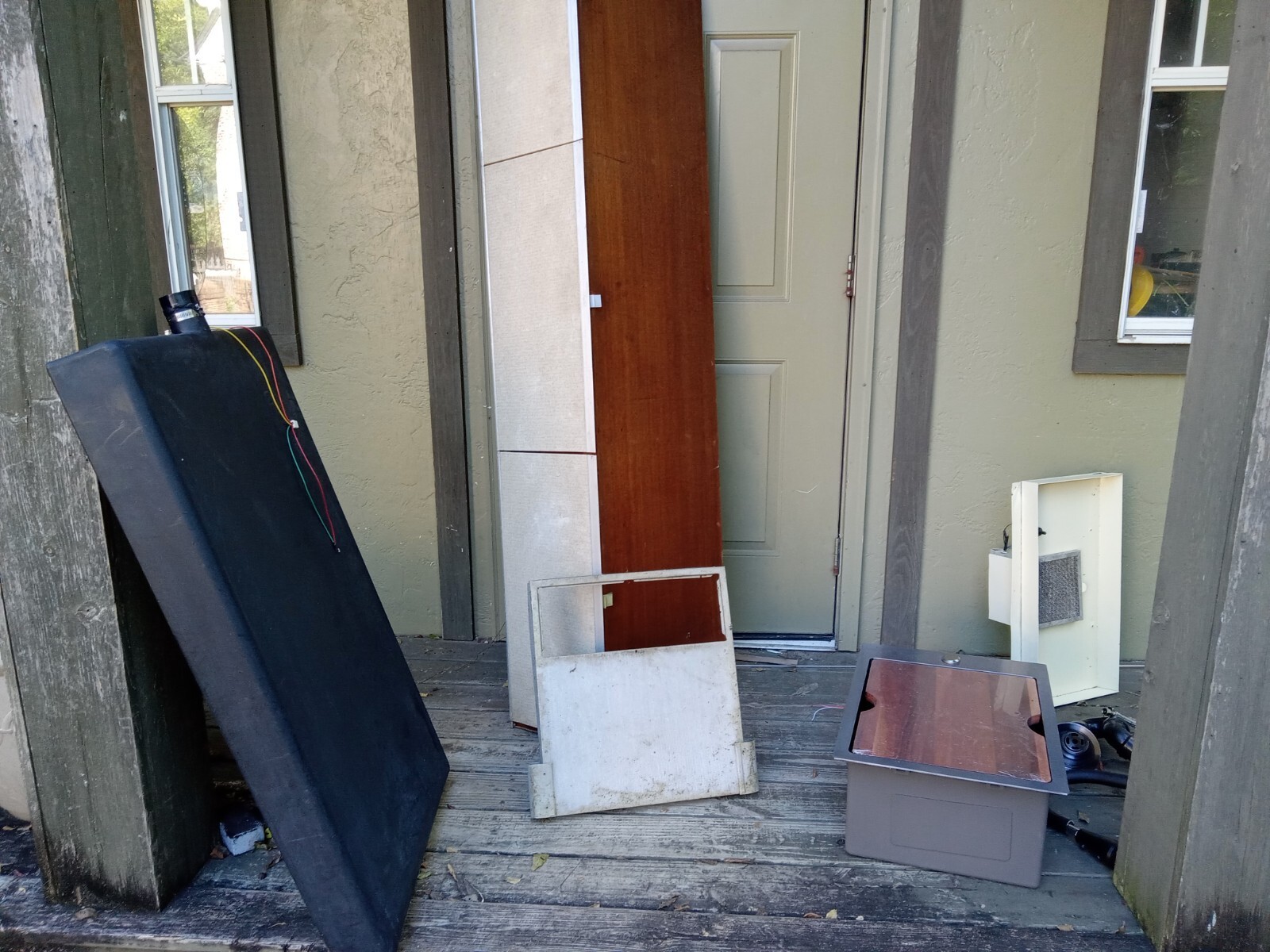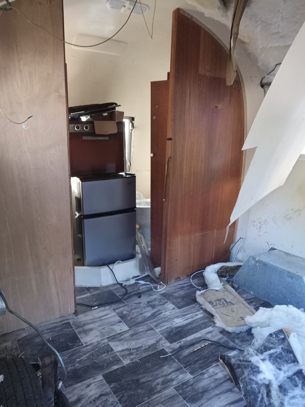 (New stainless steel black sink, speaker, installed new Hoffman air condition, new toilet, new faucets, new wiring has been installed, new tires, new floor with welded floor braces, new r19 Insulation in the walls, new sheet metal for the back interior, new lighting all the way around for the inside, walls Have been painted, new floor covering, Tongue Jack electric..new spare tire., new solar panels 100w each..slim line..perfect for the Airstream, new parking light covers new vent fa, new suburban TANKLESS, water heater.. new water pump and new antenna ball & spring..new shocks not installed, new solar power MMTP CONTROL WITH WIFI AND BLUETOOTH with built-in inverter, and new hisense 3.3 cubic ft refrigerator/freezer. ) This unit has all of the original wood to make a pattern of the parts that are damaged or not useful. I have the original toilet which needs seals in the bottom flapper and I have some seal making rubber for it. It did not leak for 46 days when tested. I have the original water tank I repaired and cleaned new filling spout and I was going to install a brand new black tank for the toilet.. it comes with it. I even have the original heating box..which has a WAVE 3 HEATER INSTALLED PROVIDING BETTER HEAT.