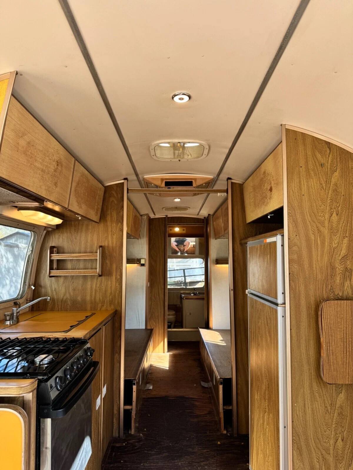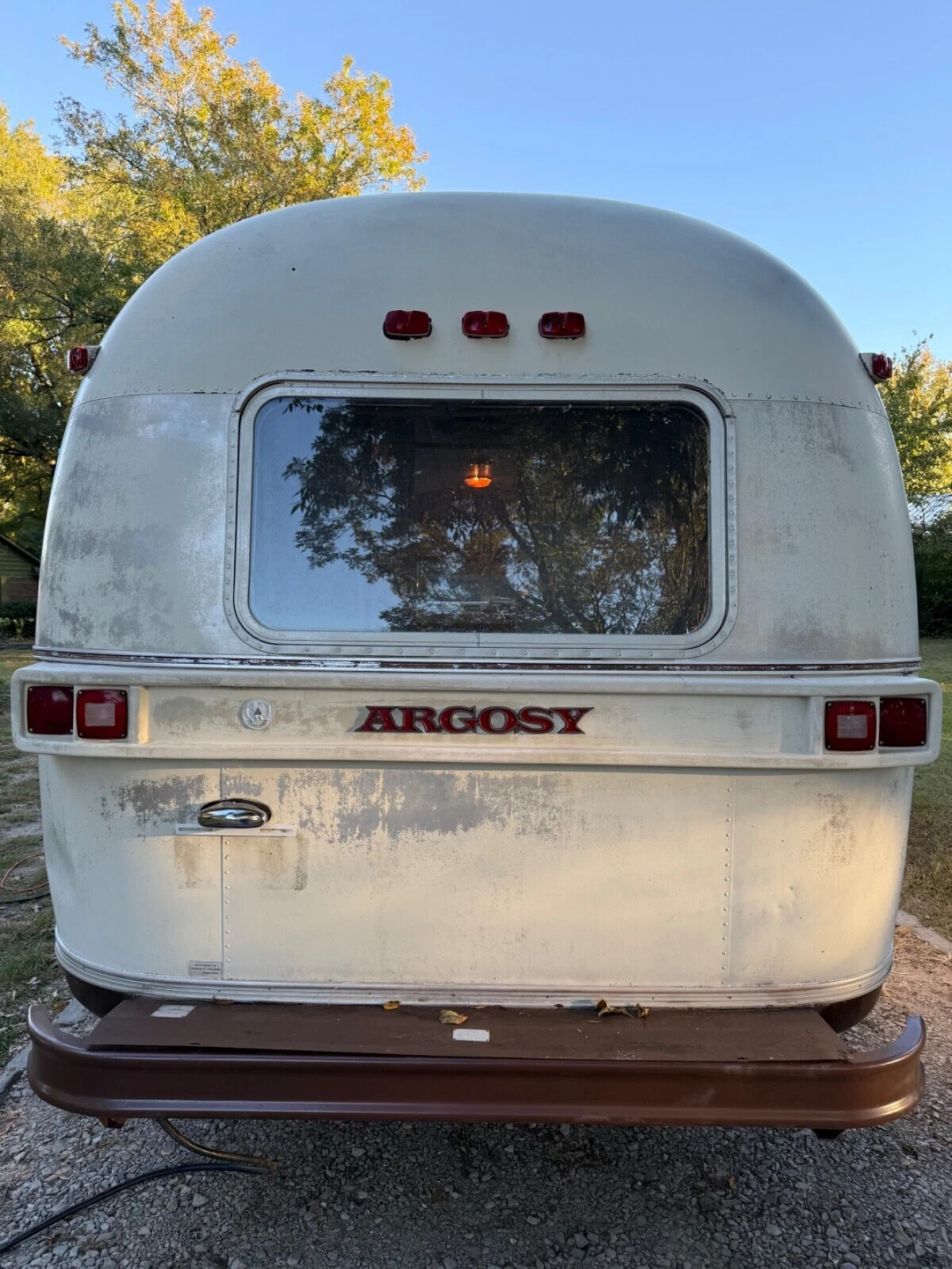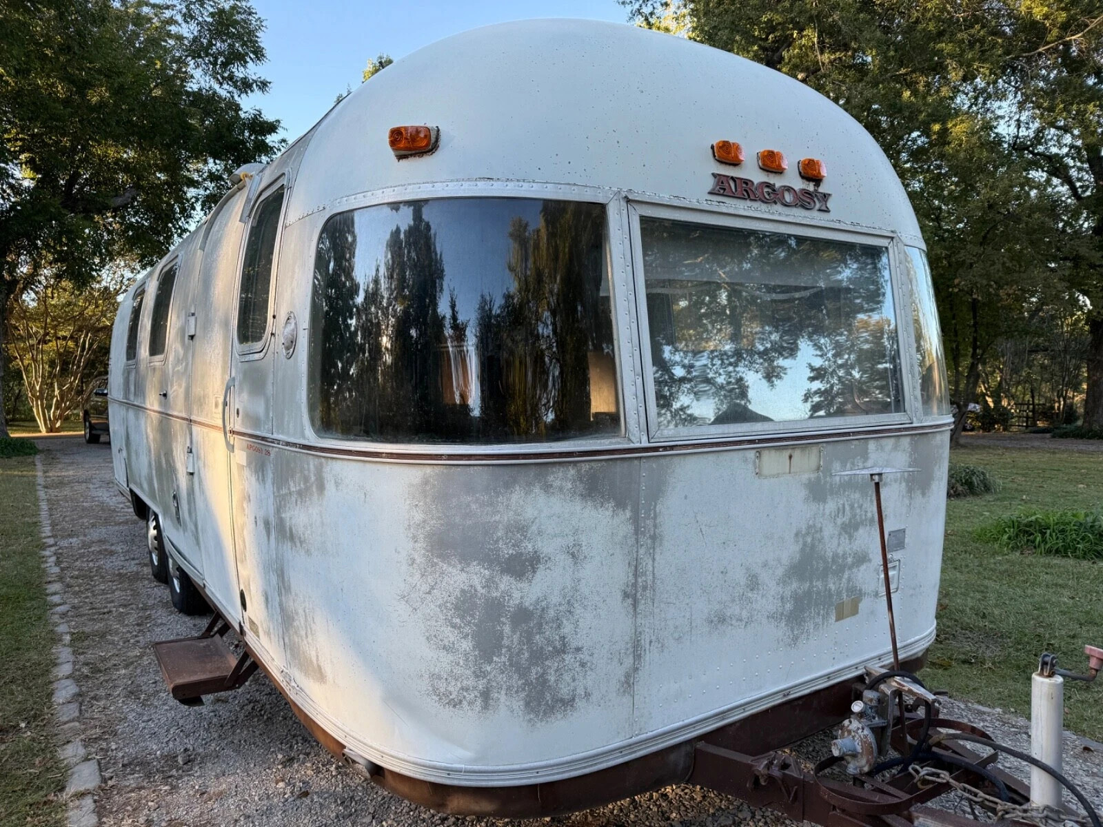 DescriptionThis is an excellent Argosy to come in and put on the finishing touches. It mainly needs the cosmetics (flooring, upholstery, etc). The body is in great condition with only a few minor blemishes. The frame and subfloor are solid. The front sublfoor is new. The electrical is fully operational. It has new dimmable led ceiling lighting. The running lights are all operational and the 7 way plug is new. The A/C, stove, stove vent, water heater and fridge are all operational. The front sofa cushions and rear mattresses were removed for replacement (we have the sofa cushions as a template). Thetrailer has 2 large his/her closets and large kitchen pantry. The vinyl facing on the overhead storage compartments has been removed and they are ready for new material or paint. The bathroom has a large tub/shower,vanity, overhead mirrored cabinet, toilet, and large closet. Theexterior is ready for your custom paint job or it could be stripped for the bare aluminum look.Please call me or message me if you need any additional photos or information.