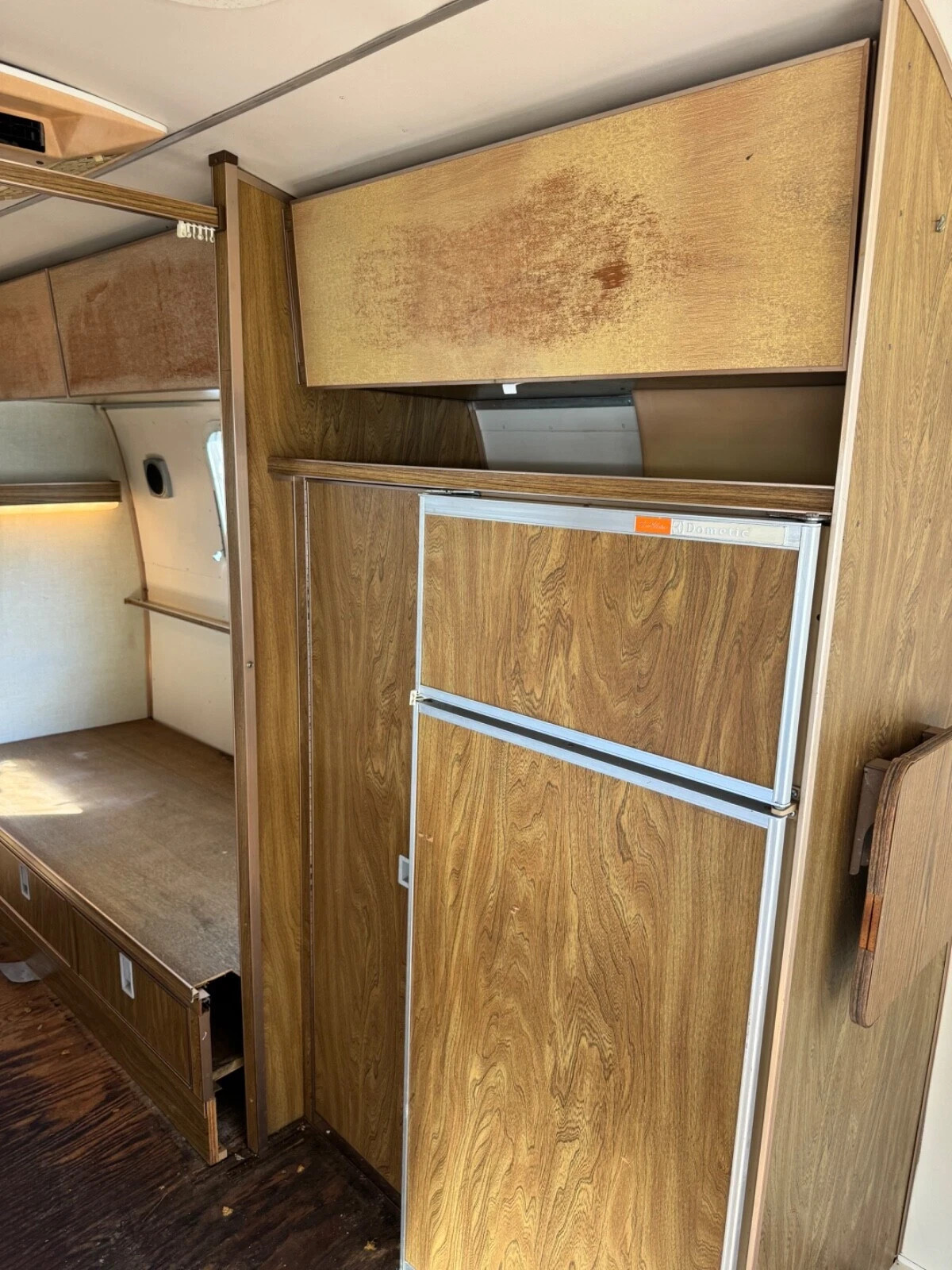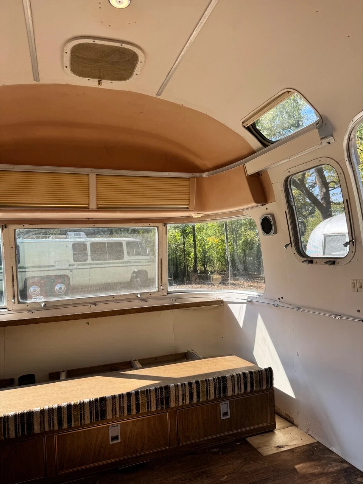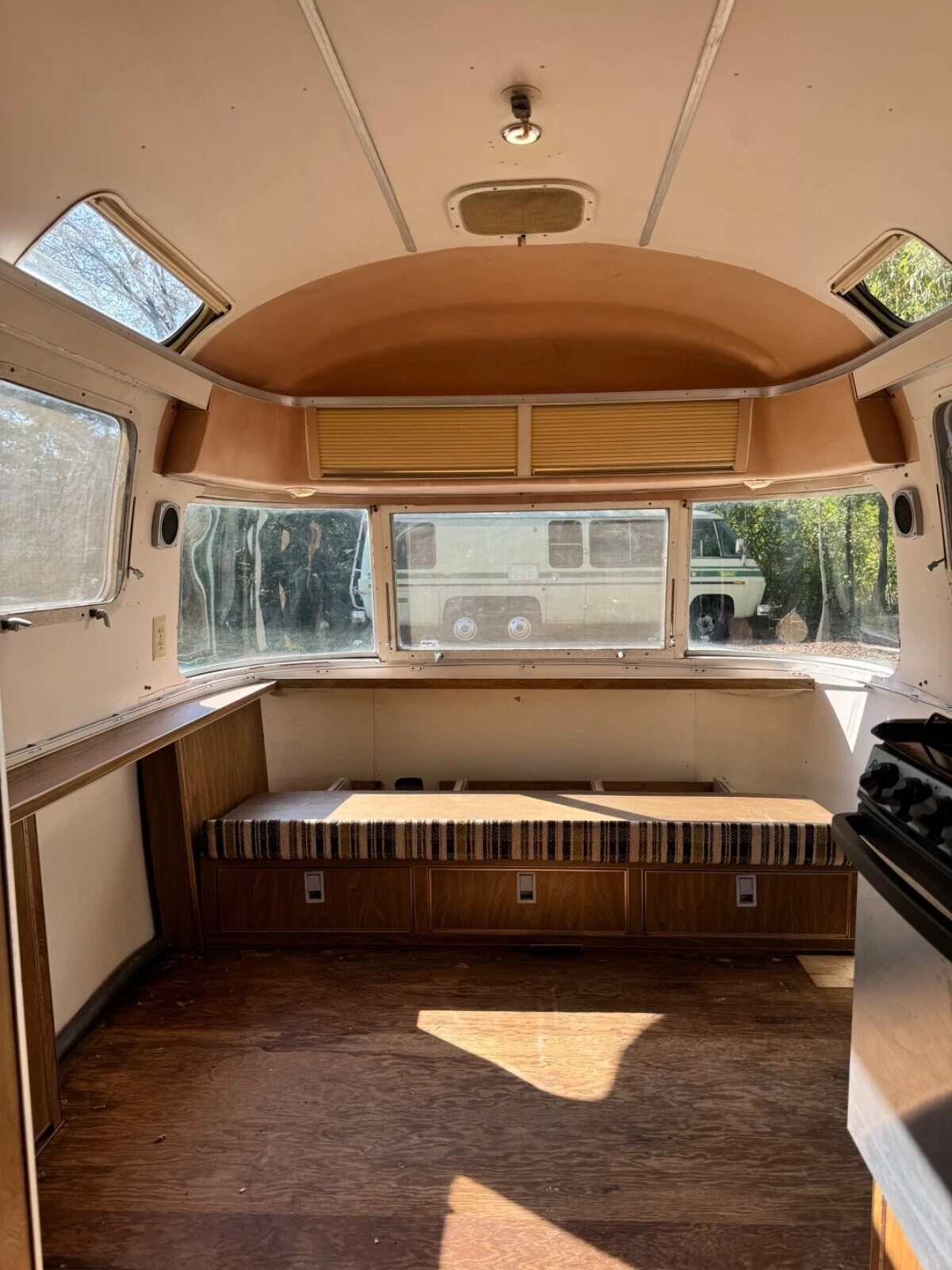 DescriptionThis is an excellent Argosy to come in and put on the finishing touches. It mainly needs the cosmetics (flooring, upholstery, etc). The body is in great condition with only a few minor blemishes. The frame and subfloor are solid. The front sublfoor is new. The electrical is fully operational. It has new dimmable led ceiling lighting. The running lights are all operational and the 7 way plug is new. The A/C, stove, stove vent, water heater and fridge are all operational. The front sofa cushions and rear mattresses were removed for replacement (we have the sofa cushions as a template). Thetrailer has 2 large his/her closets and large kitchen pantry. The vinyl facing on the overhead storage compartments has been removed and they are ready for new material or paint. The bathroom has a large tub/shower,vanity, overhead mirrored cabinet, toilet, and large closet. Theexterior is ready for your custom paint job or it could be stripped for the bare aluminum look.Please call me or message me if you need any additional photos or information.