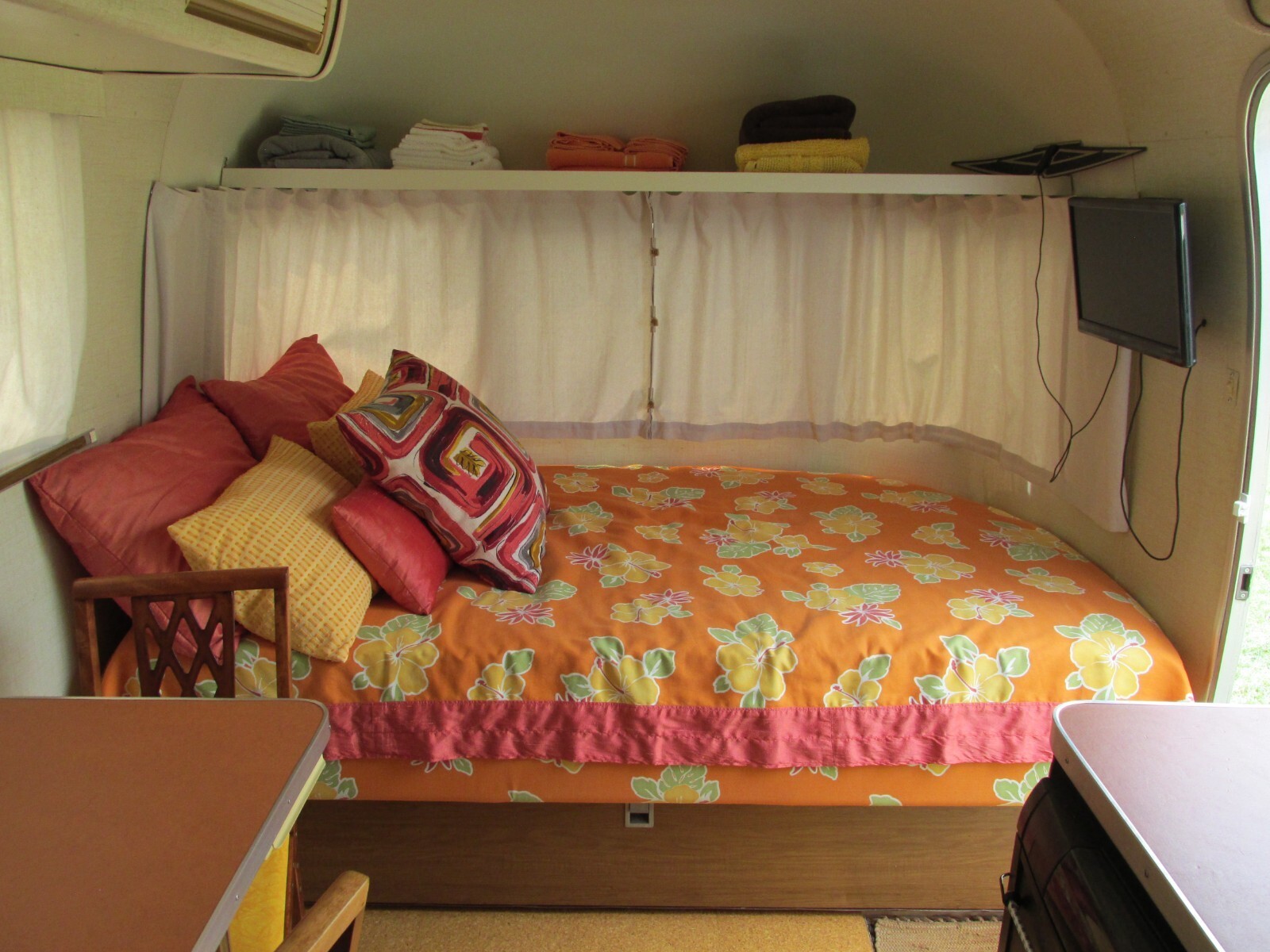 FABRICATED A PERMANENT BED FOR TWO WHERE THE DINETTE USED TO BE. 50"W x 82"L NATURAL SENSE LATEX MATTRESS 5" WITH A 2" SOFT LATEX TOPPER .