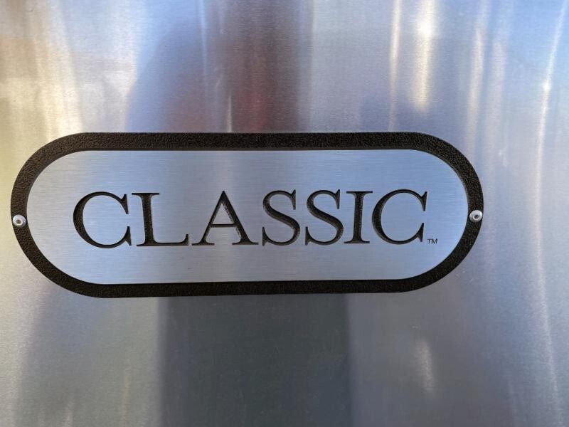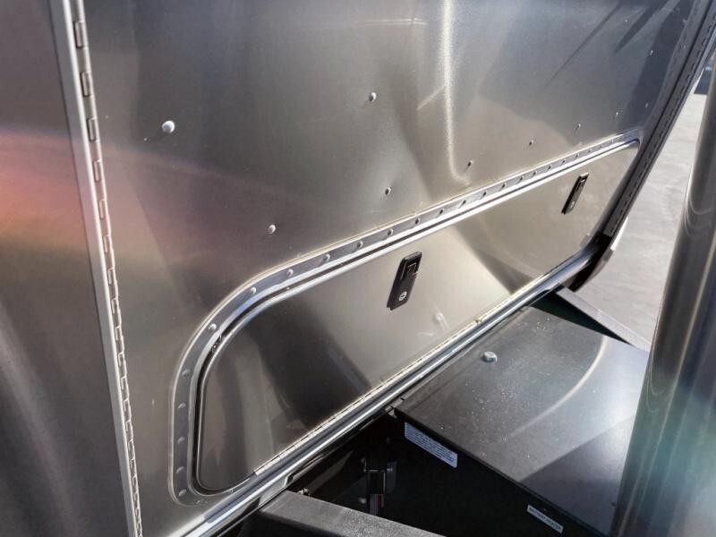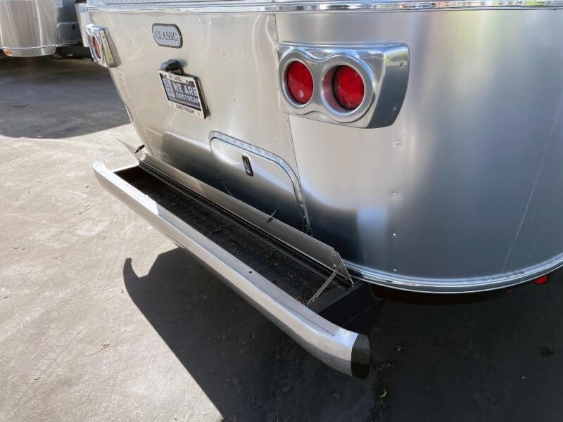 EXTERIORBright Aluminum Finish – White Finish on RoofClassic Graphics W/Chrome Trim Inserts MedallionLicense Plate Bracket w/LED LightPolished Rear Bumper w/StorageEnclosed Insulated Underbelly/Exterior ShowerPowered Patio AwningWindow Awning PackageSolar Front Window ProtectionLED Patio Awning Lights – Dimmable //2 Zip Dee ChairsLED Tail Brake–Reverse Turn LightsLED Lighted Acrylic Assist Handle at Entry