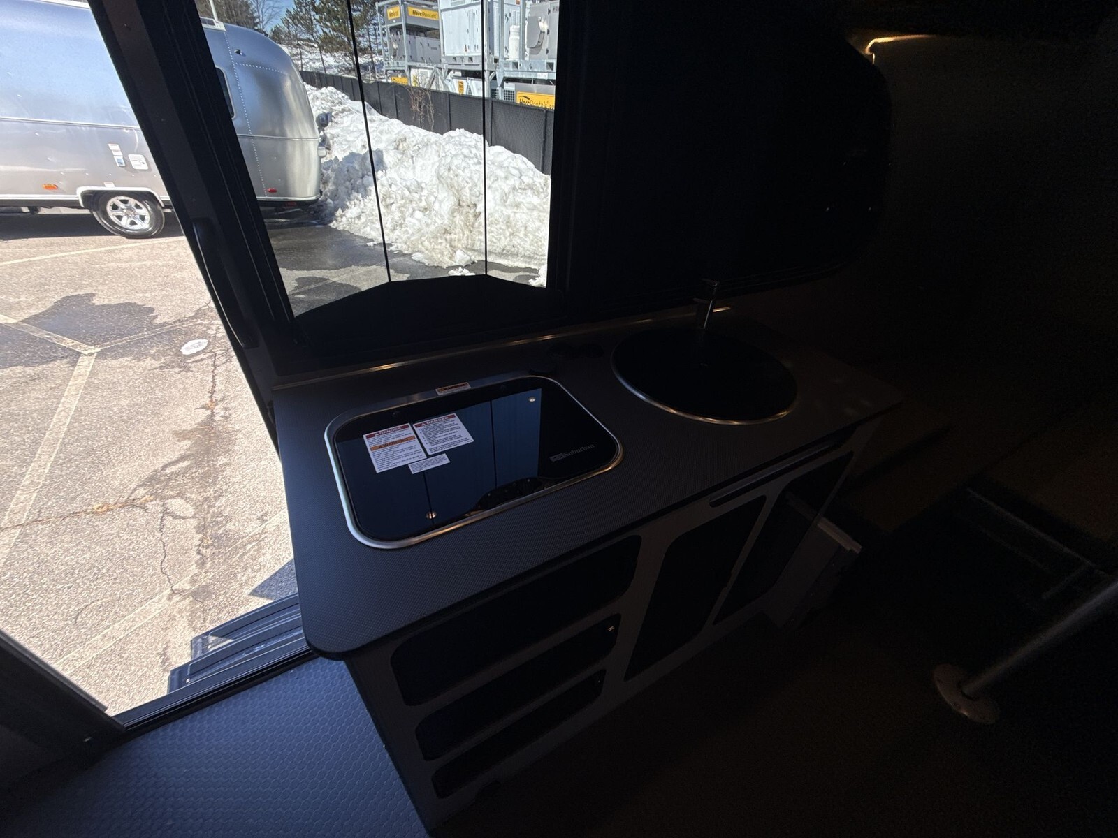 Inside, the Basecamp 20X offers a thoughtfully designed space that maximizes comfort and utility. The open floor plan provides ample room to move around, while the use of high-quality, easy-to-clean materials ensures the interior remains pristine after every trip. The kitchen area is equipped with a two-burner stove, a stainless steel sink, and a mid-sized refrigerator, making meal preparation on the road a breeze.