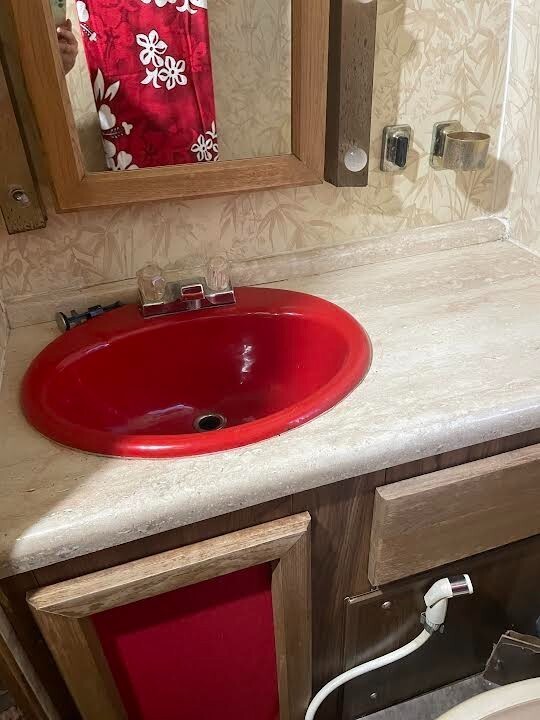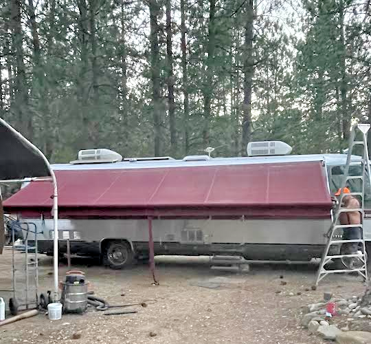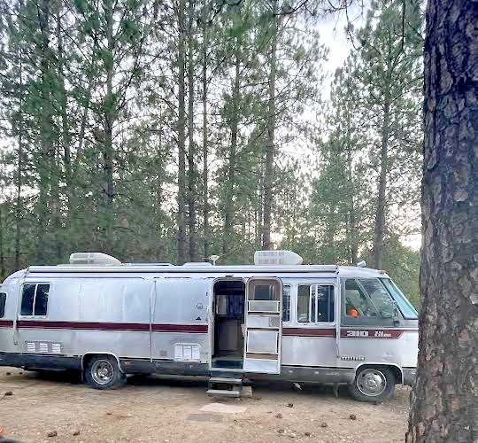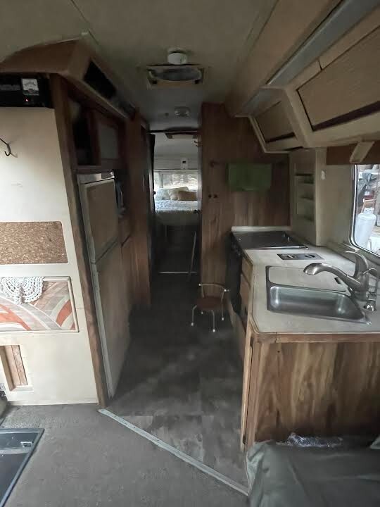 Chevy 454 Big Block running gear, 31’ long, sleeps 4.Has a Onan, 6500 watt generator, solar panels with charging meter, two AC units, three awnings, central vacuum system on board. Features a separate shower stall from toilet and sink area.Water tank capacity 60 gallon, fuel tank 40 gallons. It has a clean Title and mileage on it is 87,000.