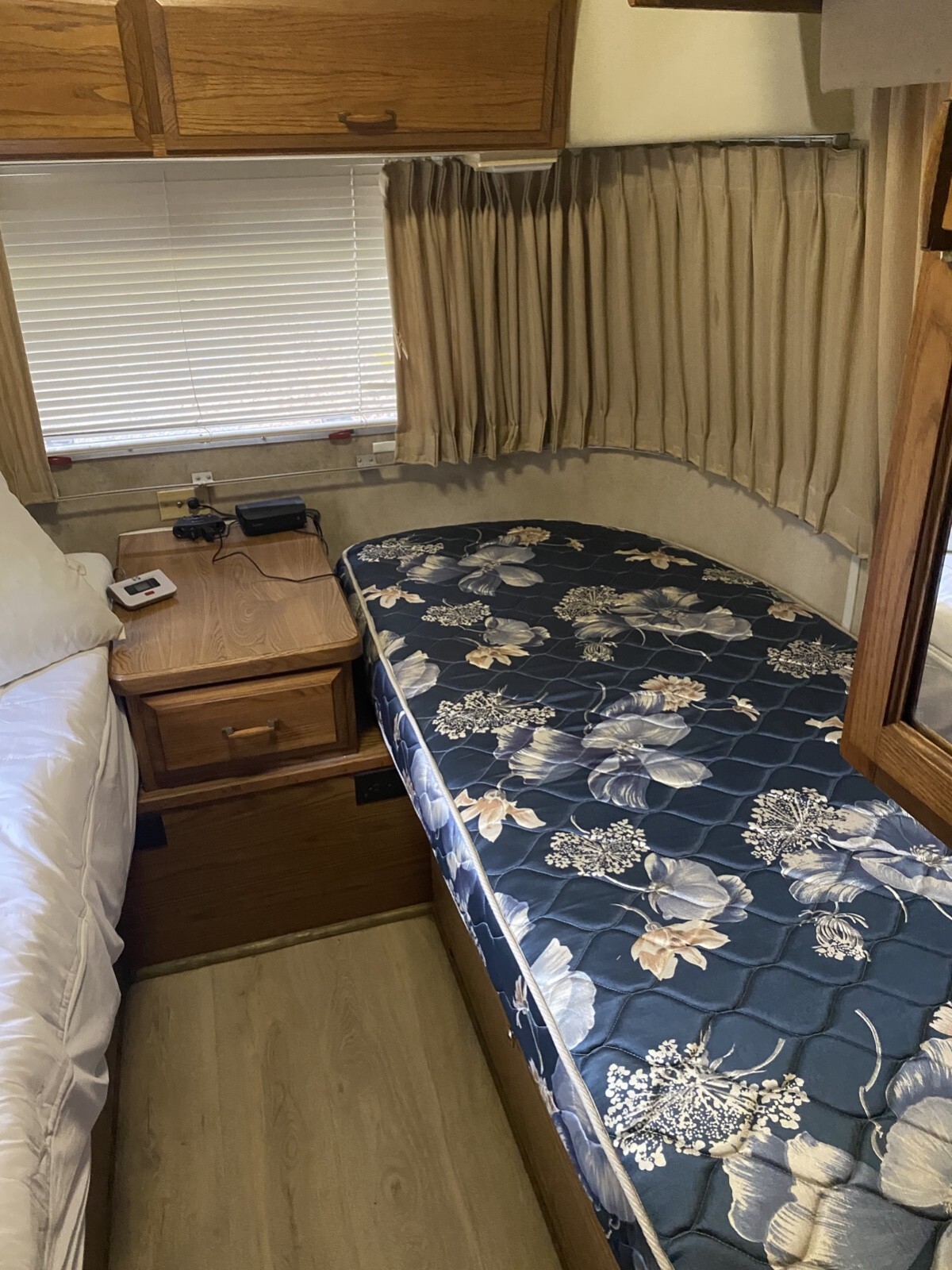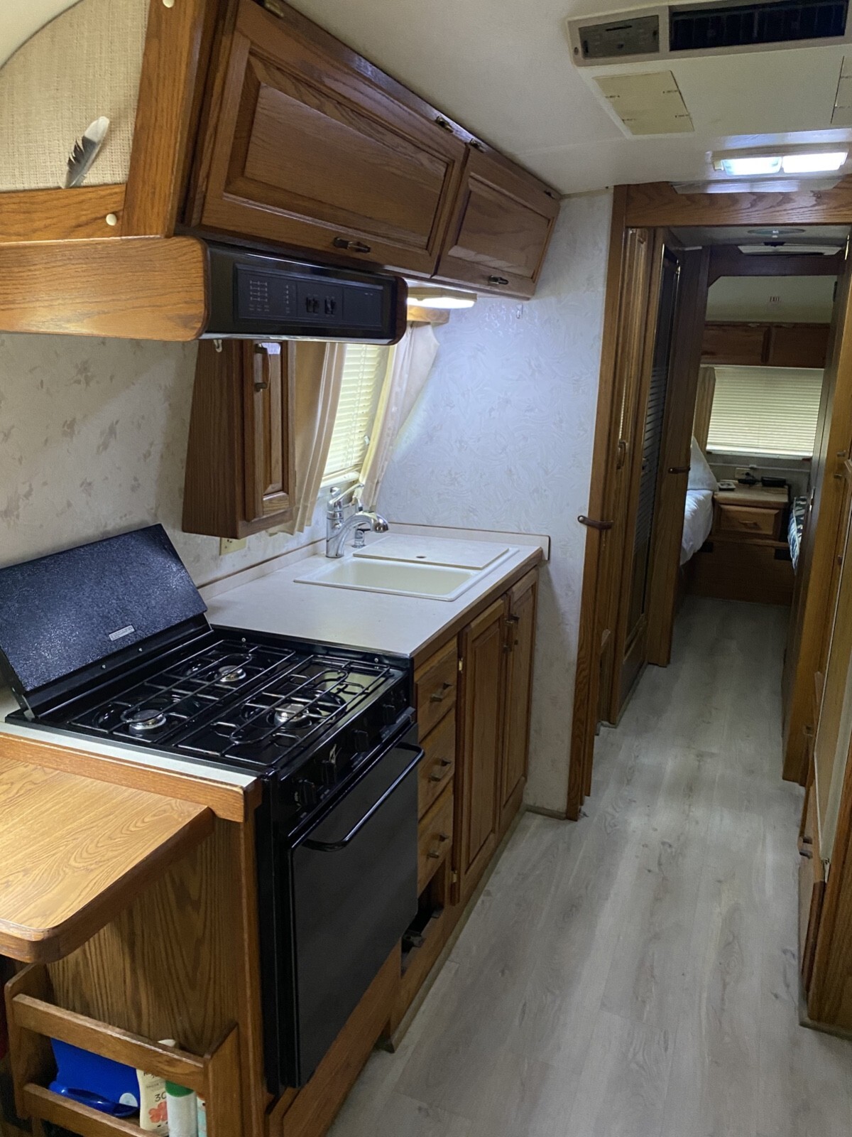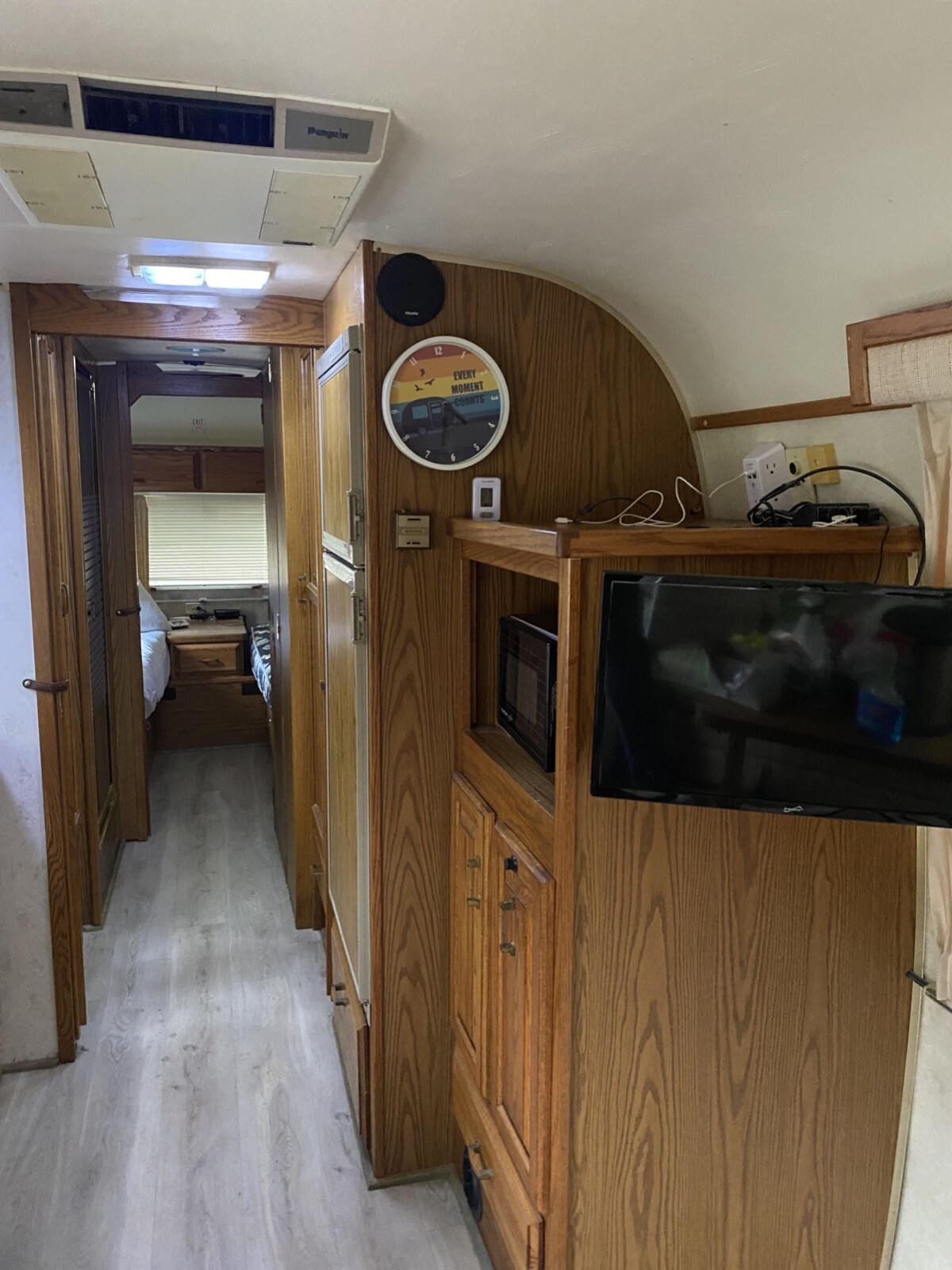The Airstream Excella 1000 from 1995, is a travel trailer designed for comfortable sleeping capacity for up to 4 people. Built by Airstream, a well-known manufacturer in the industry, this RV offers a cozy living space for those on the road. With a reliable and durable construction, this trailer is perfect for camping trips and extended adventures, providing a convenient way to travel and explore.Excella 1000 features include beautiful oak cabinets (cedar in two main closets), Storage over, under, and at foot of rear twin beds, padded vinyl padded ceilings, shower located directly across the hall from the toilet. Couch in front folds to sleep two.New vinyl plank flooring was installed and new toilet and furnace. Range top and propane oven, 110v/propane refrigerator, microwave, propane water heater, all plumbing, sewer and electric systems work properly. 12v/110 volt TV/disc with new omnidirectional antenna, and Alpine Bluetooth radio/disc player are recently installed as are LED lights.There are 200w Renogy flexible solar panels on roof and wire for Starlink antenna installed without making any holes in roof. The roof was inspected and white heat reflecting coating (as used on Airstreams made after 2015) has been added.I have service records and manuals since new. Brake/wheel bearing service and new Goodyear Endurance 10 ply tires installed this season. All hookup items: leveling blocks, new leveling jacks, fresh water hose (pressure regulator, and extension hose), shore power cord (surge protector and extension), and sewer hose with support are provided.When boon docking carry the 3150 watt dual fuel generator to recharge 12v, and provide 110v for AC. Airstreams of this era are lighter, simpler to maintain, and have a high build quality. Parts remain available and they are tough, reliable travelers.Also available for purchase, 2009 Chevrolet 2500 Duramax diesel, Z-71, and weight distribution hitch, making it a turn-key-ready traveling pair.