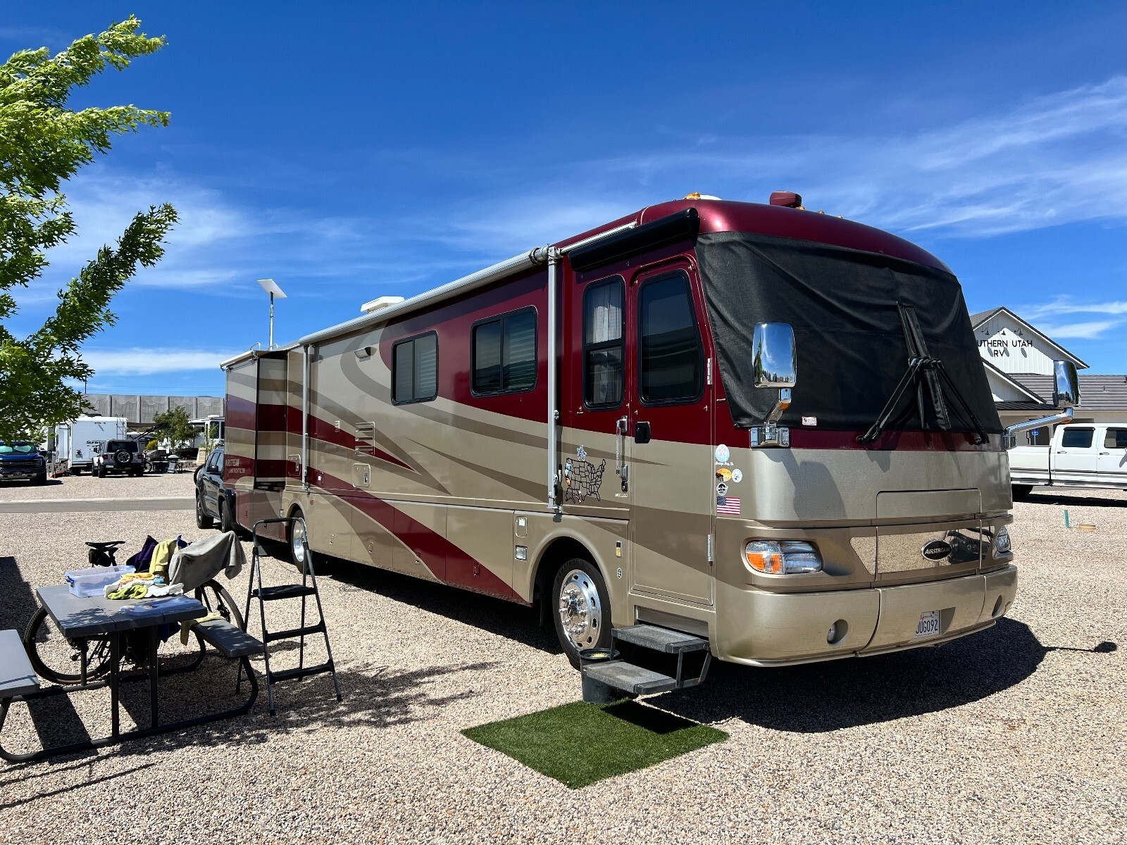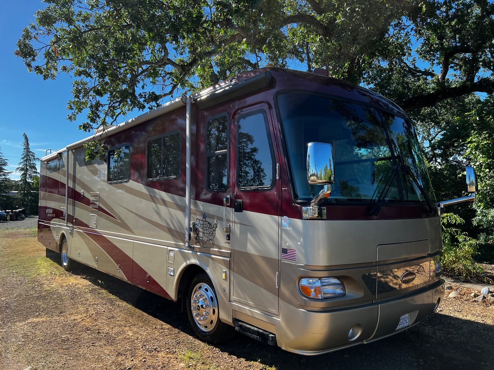 At 39’6” and featuring double slide-outs, this coach offers the room and livability needed for extended stays, yet remains easier to maneuver than many larger motorhomes in its class.Includes new power awnings over patio area and door. Tires and batteries have much life left in them.