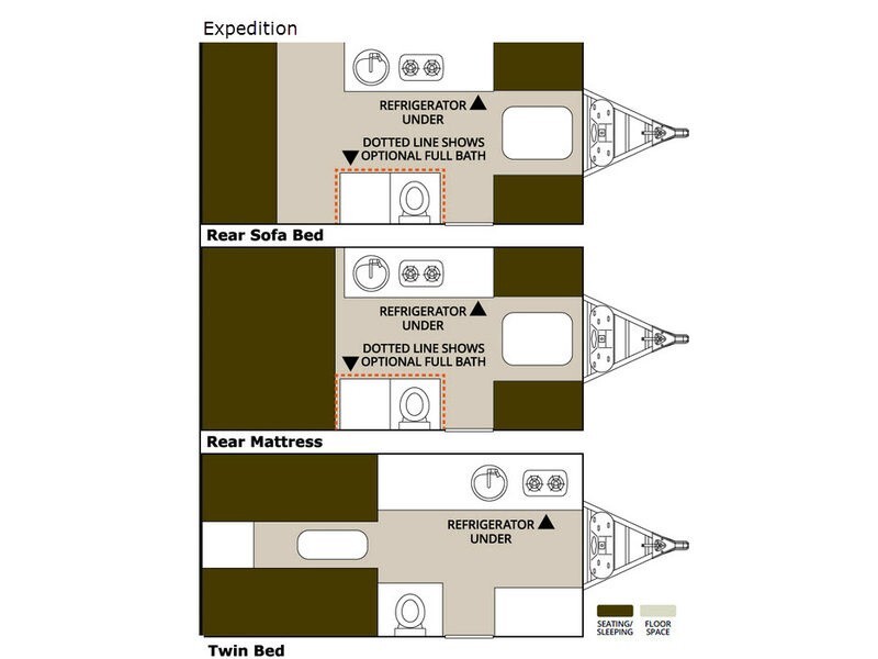 There are also a few options, such as, a 60" x 80" full mattress in the rear or you can choose twin beds in place of the rear sofa. You can also choose the convenience of having an optional full bath.