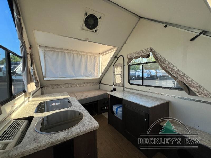 This coach is being sold with a MD state inspection, guaranteed to pass in your home state. Also an Appliance preparation so you will know everything works when you pick it up. This coach also comes with a full showthrough by myself at our Thurmont location on date of pickup. Otherwise being sold AS IS. The Expedition folding A-frame camper by Aliner is a great pop-up for a weekend trip. In the rear, there is a sofa bed which makes into a bed. One side of the camper has a sink, two burner range, and an under counter refrigerator. In the front, you will find a dinette which makes into a bed. There are also a few