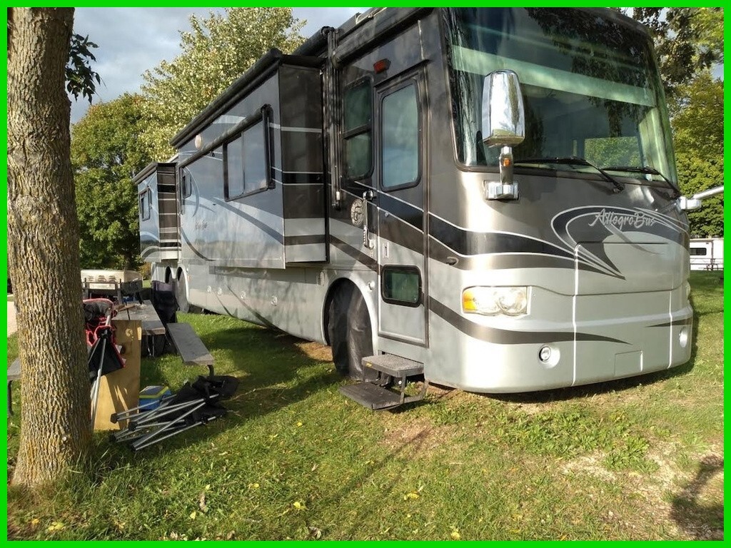 2007 Allegro Bus 42 QDP Class A Diesel RV for Sale in Salome, AZ 85348 This Allegro Bus is powered by a Cummins ISL 400HP engine and an Allison automatic transmission with 102,000 miles. The overall length is 42 feet and it comes equipped with 4 power retractable slide-outs, 1 power retractable awning, 3 A/C units, and plenty of room to sleep 6. This unit has been well-maintained. Kitchen Area Features 2-Burner Gas Cooktop Overhead Fan Stainless Steel Convection Microwave Four-Door Fridge/Freezer with Ice Maker Split Sink & Faucet