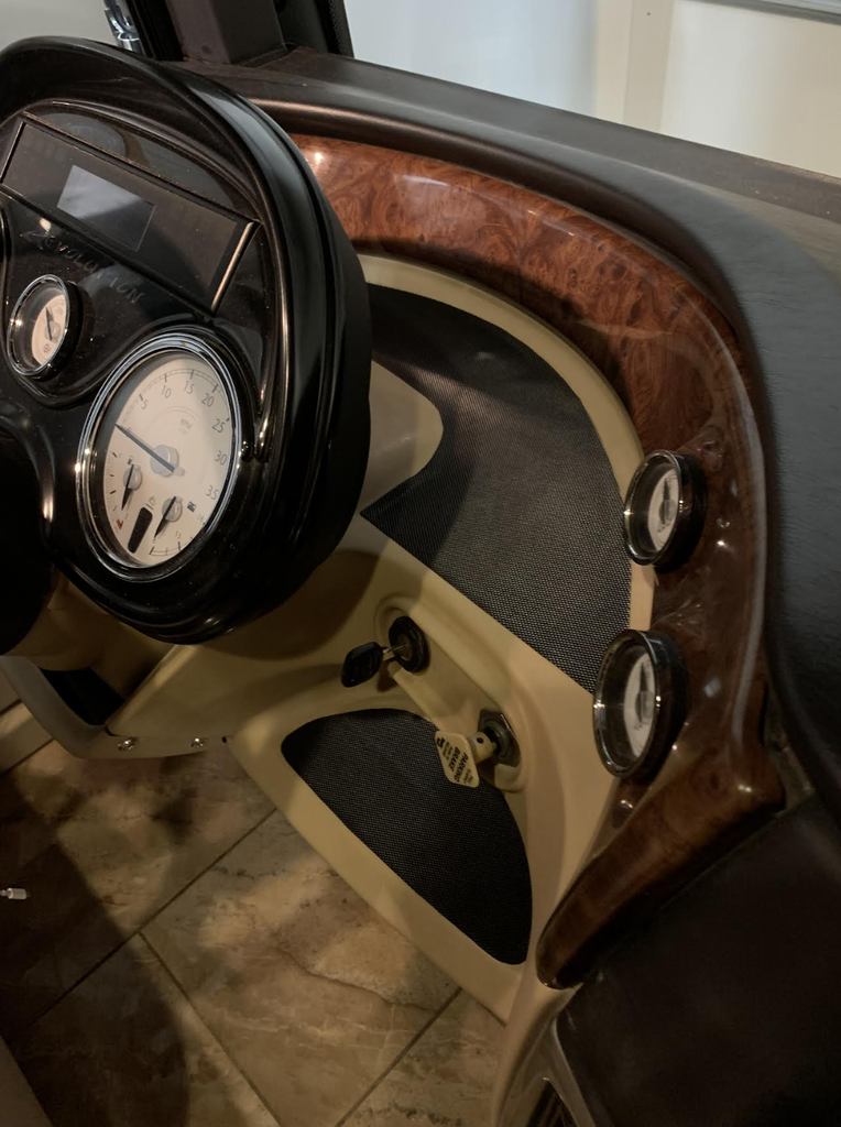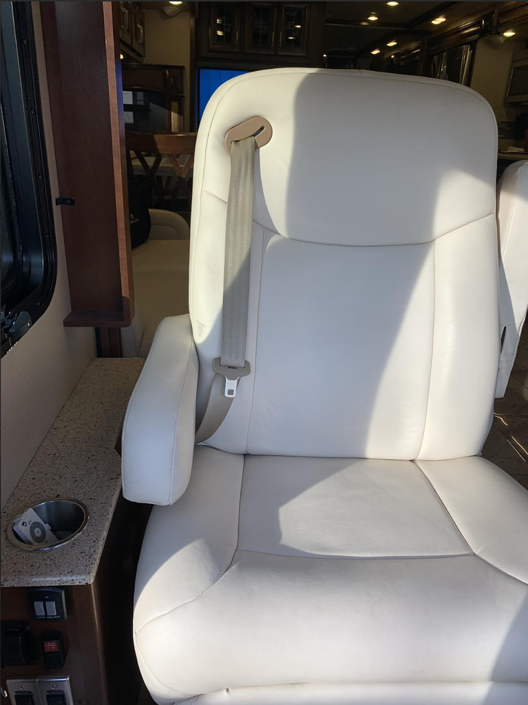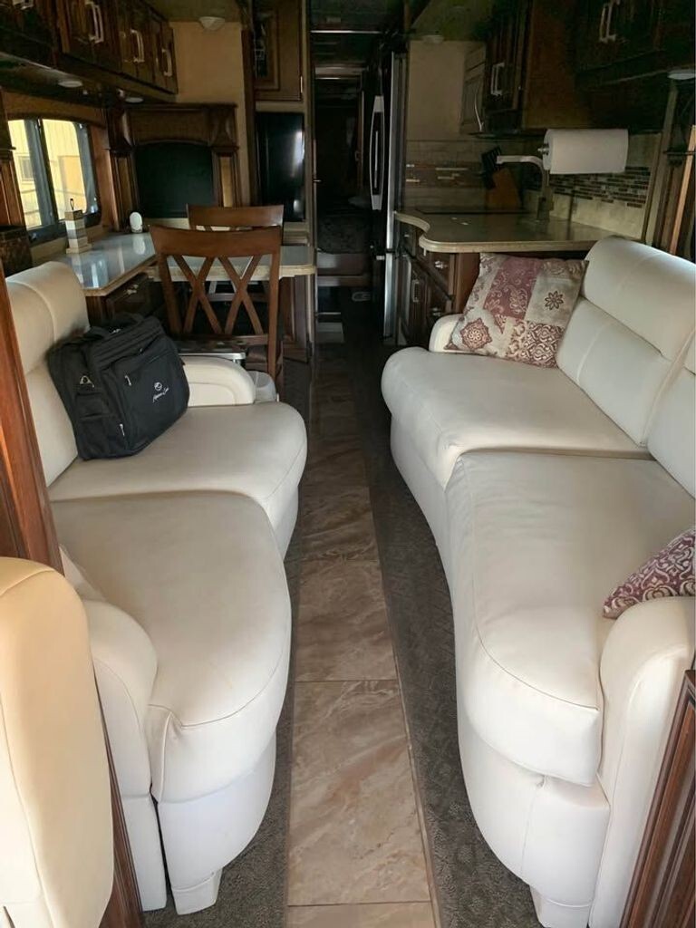 Inside, youre welcomed by a refined, residential-style interior with polished tile floors, solid hardwood cabinetry, and updated furnishings. The expansive triple-slide layout opens the living space for comfort and functionality. Recent upgrades include new upholstery on both captains chairs and sofas, plus new carpet on slide-out floors, giving the coach a fresh, modern feel.