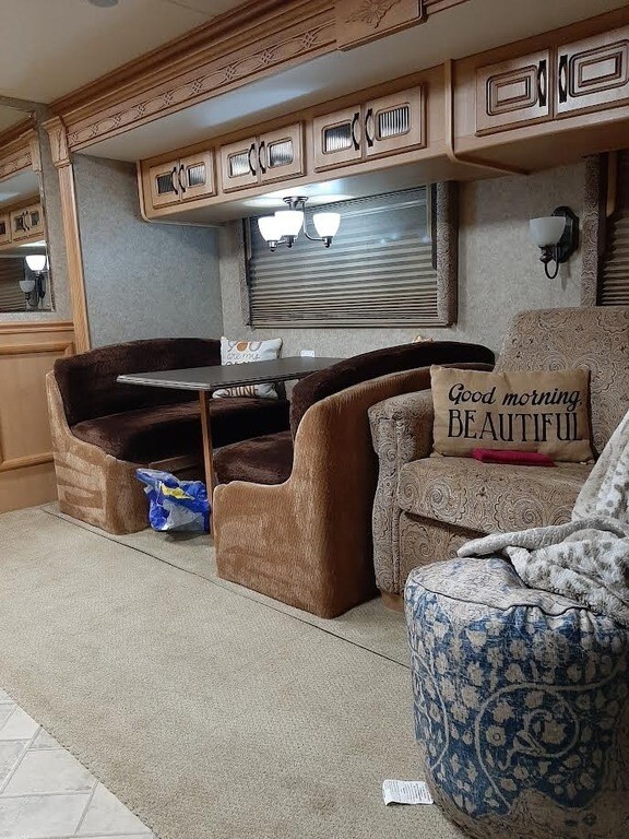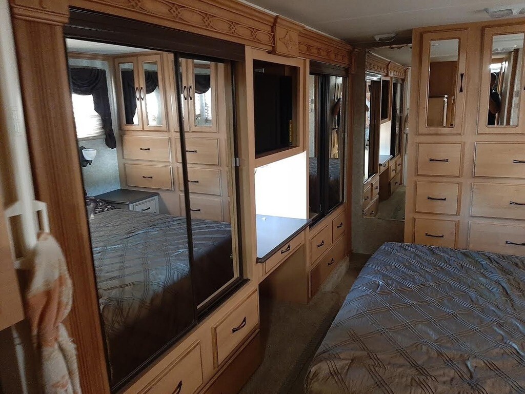 This Cross Country is powered by a Cummins engine and an automatic transmission with 61,000 miles. The overall length is 38 feet, and it comes equipped with 2 power retractable slide-outs, 1 awning, 2 A/C units, a generator, and plenty of room to sleep 5. This unit has been well-maintained.