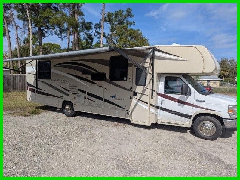 2018 Coachmen Leprechaun 319MB Class C RV For Sale in Melbourne, FL 32935 This Coachmen is powered by a 6.8L V10 engine and a 6-speed automatic transmission with 25,000 miles. The overall length is 32.92 feet, and it comes equipped with 2 power-retractable slide-outs, a 21-foot power awning, 1 A/C unit, and room to sleep up to 8. This unit has been well-maintained. VIDEO Kitchen/Living Area Features 3-Burner Stove/Oven Overhead Fan Microwave Mid-Size Fridge/Freezer Sink & Faucet Storage Space U-Shaped Dinette TV on T