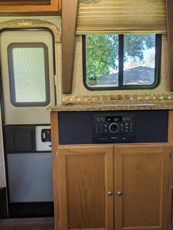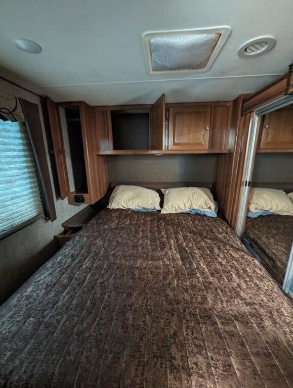 This Coachmen is powered by a 6.8L V10 engine and a 6-speed automatic transmission with 25,000 miles. The overall length is 32.92 feet, and it comes equipped with 2 power-retractable slide-outs, a 21-foot power awning, 1 A/C unit, and room to sleep up to 8. This unit has been well-maintained.