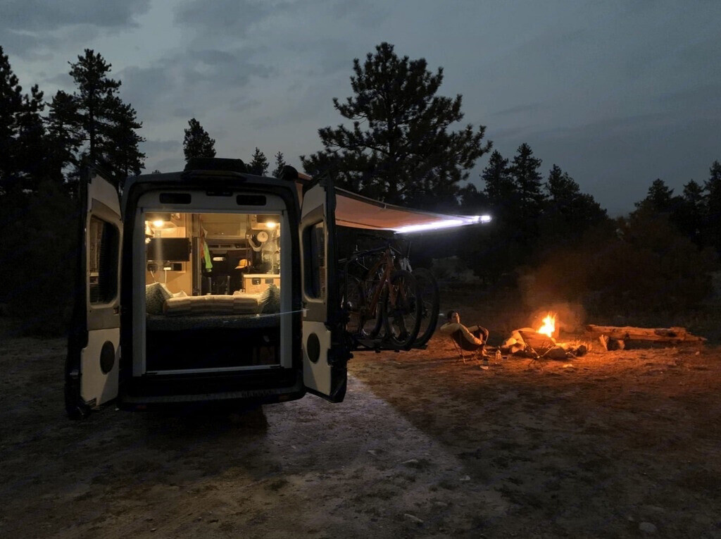 - Large capacity AGM battery that is charged by the solar panels as well as the van’s alternator when driving