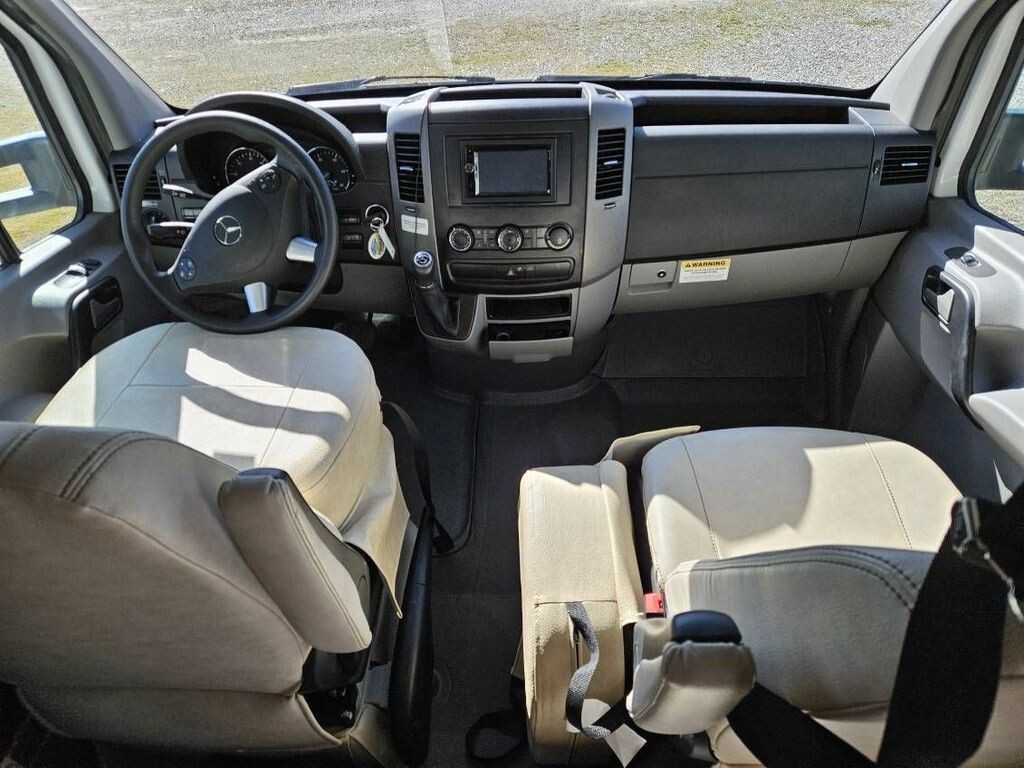 Built on the reliable Mercedes-Benz Sprinter diesel chassis, this coach delivers impressive efficiencyaveraging approximately 13.3 MPGwhile providing a smooth, confident driving experience. The upscale cab features leather captains chairs with booster seats, creating a comfortable and commanding ride for long journeys.