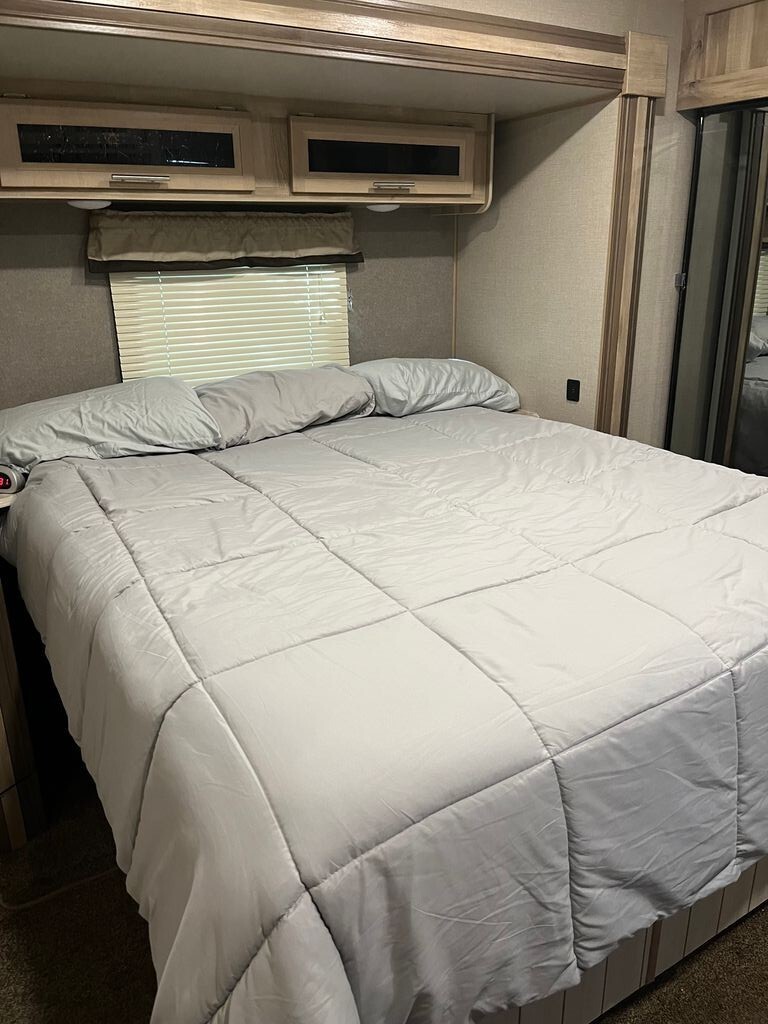35 f, queen bed NEW mattres, two fireplaces, two. Acs, Steering Stabalizers, S, 42 inch tv in bedroom and living room, this unit was used as a office until I bought it two years ago, has very few road mile, 1200 Equilizer stabilizer hitch, New loveseat, New convection microwave, LED's, slide topper. Everything is in Perfect condition.
