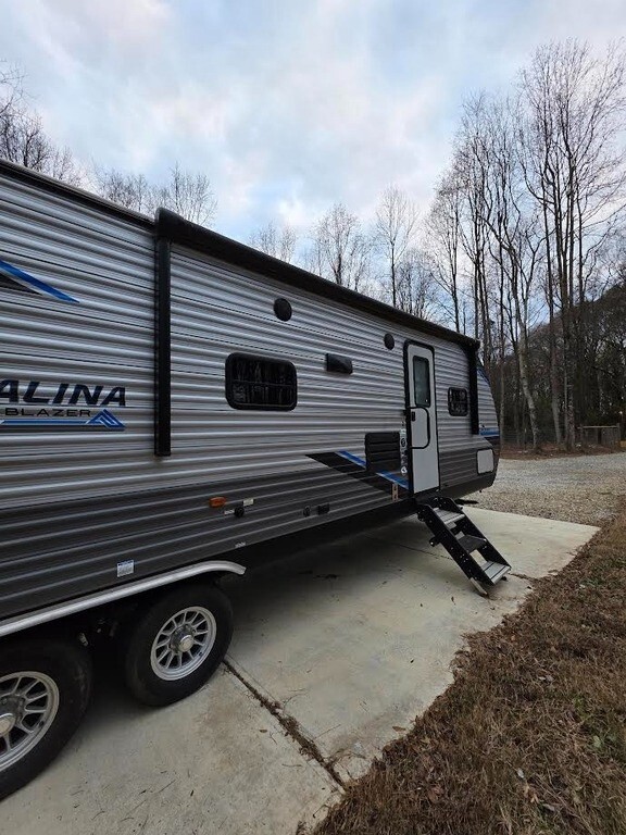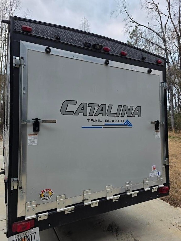 2022 Coachmen Catalina Trail Blazer 29THS Travel Trailer Toy Hauler For Sale in Canon, GA 30520 This Coachmen has an overall length of 35.67 feet and comes equipped with 1 power retractable slide-out, 1 power retractable awning, 2 A/C units, an 11-foot garage, and plenty of room to sleep 6. This unit has been well-maintained. Kitchen/Living Area Features 3-Burner Stove/Oven Overhead Fan Microwave Full-Size Fridge/Freezer Sink & Faucet U-Shaped Dinette Storage Space TV Stereo System