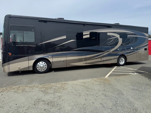 2022 Coachmen Sportscoach SRS 365RB Class A Diesel For Sale in Huntersville, NC 28078 This Coachmen is powered by a 6.7L I6 diesel engine and a 6-speed automatic transmission with 11,000 miles. The overall length is 40 feet and it comes equipped with 2 power retractable slide-outs, 1 power retractable awning, 2 A/C units, 1½ baths, a fireplace, a generator, outdoor entertainment, and plenty of room to sleep 8. This unit has been well-maintained, and has a 5 year warranty Kitchen/Living Area Features 3-Burner Stove/Oven Overhead Fan Microwave Full-Size Fridge/Freezer Sink & Faucet