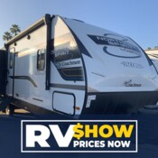 Enjoy fun camping experiences in this cozy camper for two to four depending on size! You will love the full rear bath with a nice vanity and sink including a medicine cabinet, toilet, and shower. There is a booth dinette for dining and games, and it can also be transformed into sleeping for one or two depending on size. Opposite the dinette, you will find your functional kitchen with a refrigerator, cooktop, and round single sink. Overhead cabinets plus drawers and cupboards below allow for ample storage of your dishes and dry goods. In front, there is a comfortable bed for two with wardrobes on either side and overhead cabinets for your personal belongings. There is also storage beneath the bed for larger items like extra blankets or your suitcases. There is also an exterior pass-thru storage compartment in front for your camp chairs and games!
