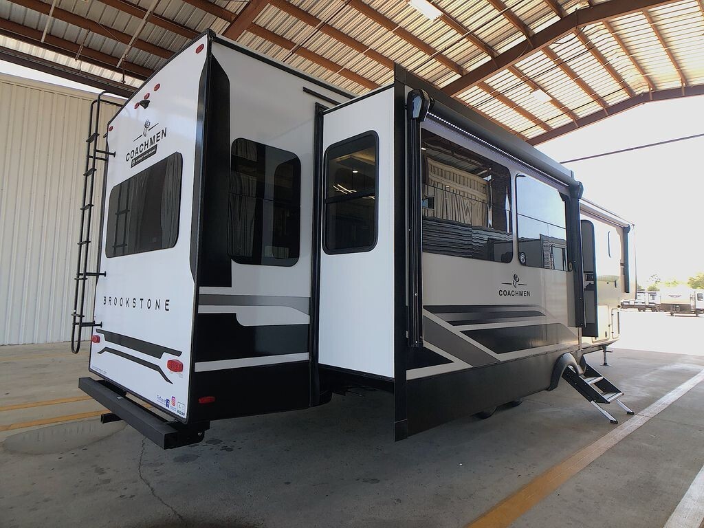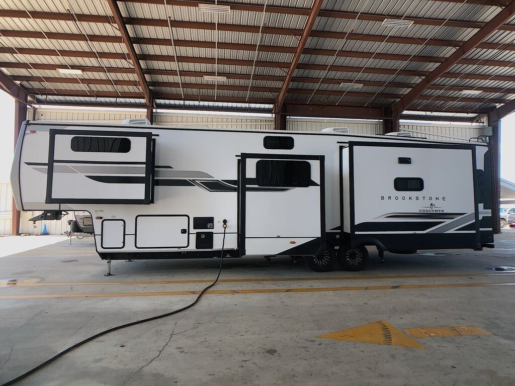 The 2025 Coachmen Brookstone 398MBL is a fifth-wheel RV designed to provide comfort, convenience, and style for those passionate about hitting the road. With the reputable craftsmanship Coachmen is known for, this Brookstone model stands out with its thoughtful design and practical features that make traveling an exceptional experience.This RV is built with a sturdy and reliable frame that gives you peace of mind while on the road. The exterior of the Brookstone 398MBL features sleek lines and a modern finish, offering a contemporary look that is both eye-catching and practical. The durable exterior is perfect for a variety of environments, from rustic campsites to high-end RV parks.Inside, the 398MBL offers a spacious and well-organized layout that makes the most of every inch. One of its standout features is the mid-bunk layout, which provides extra sleeping space without compromising on living area. This makes it perfect for