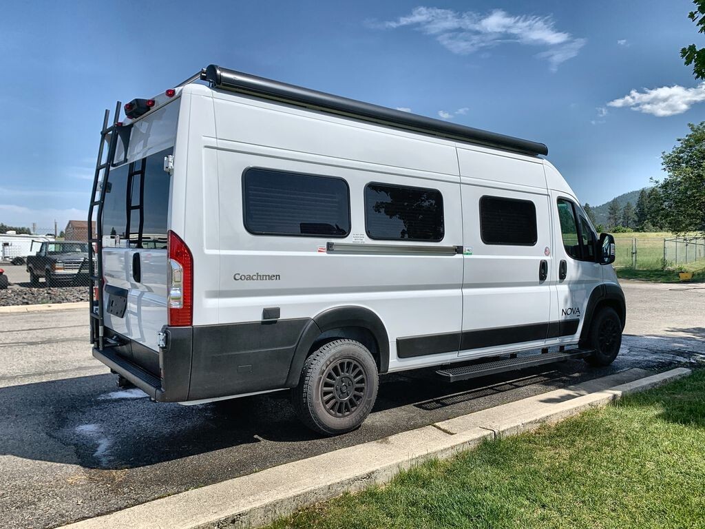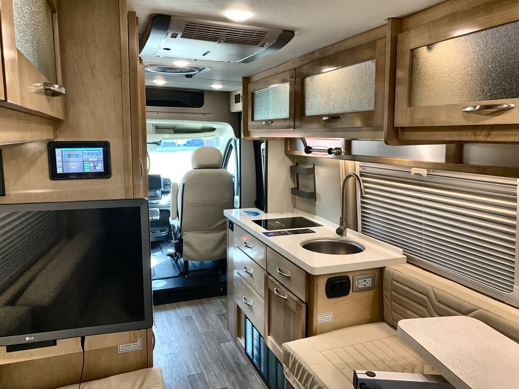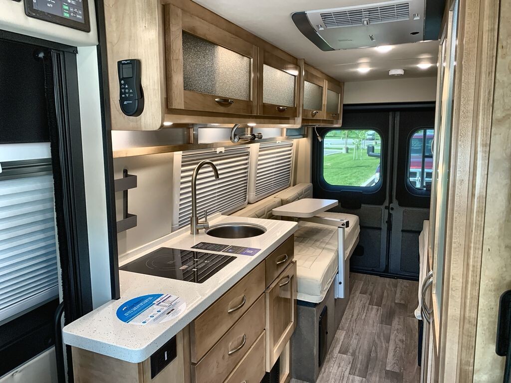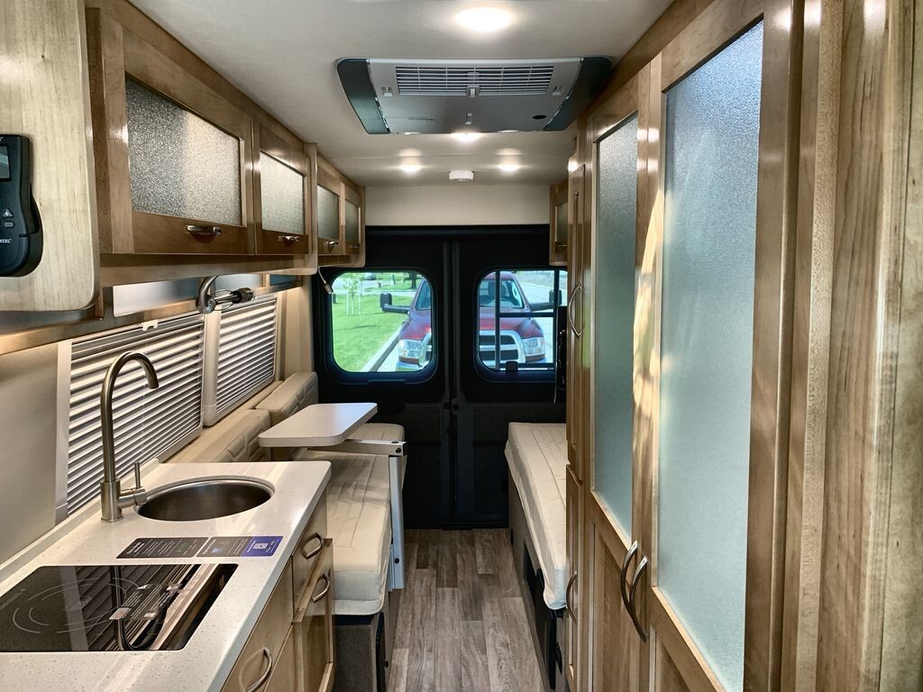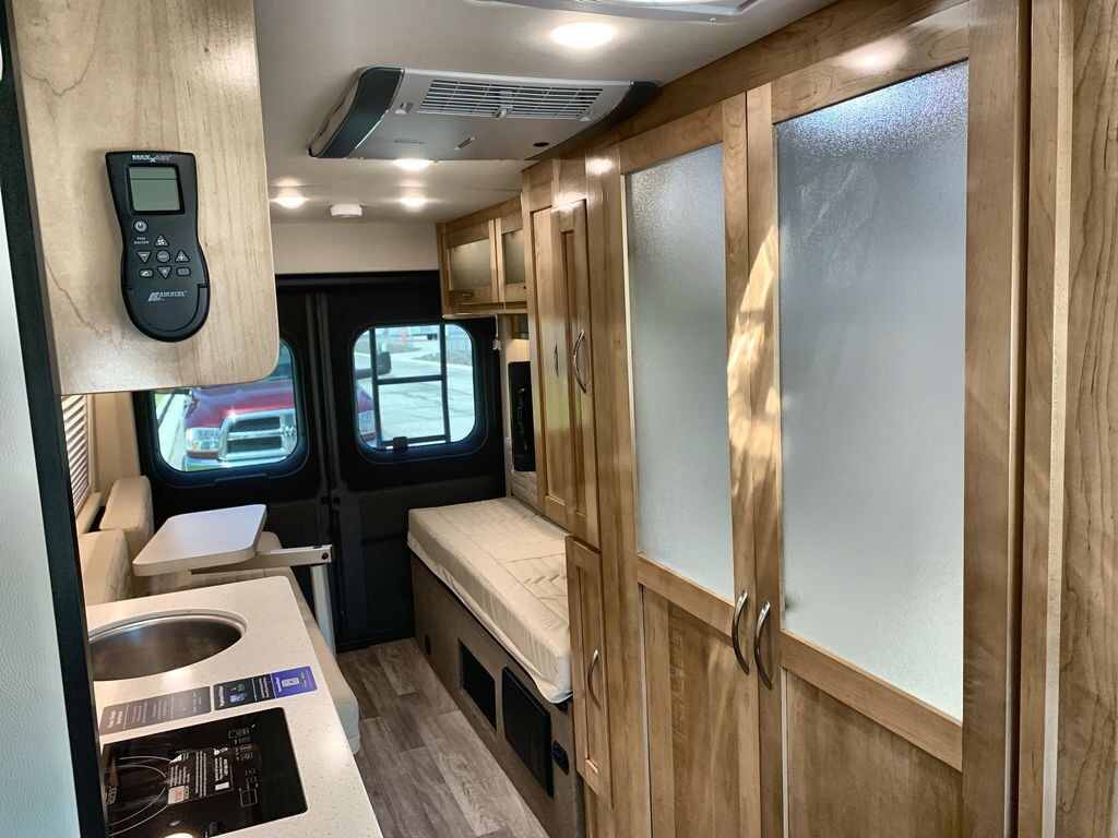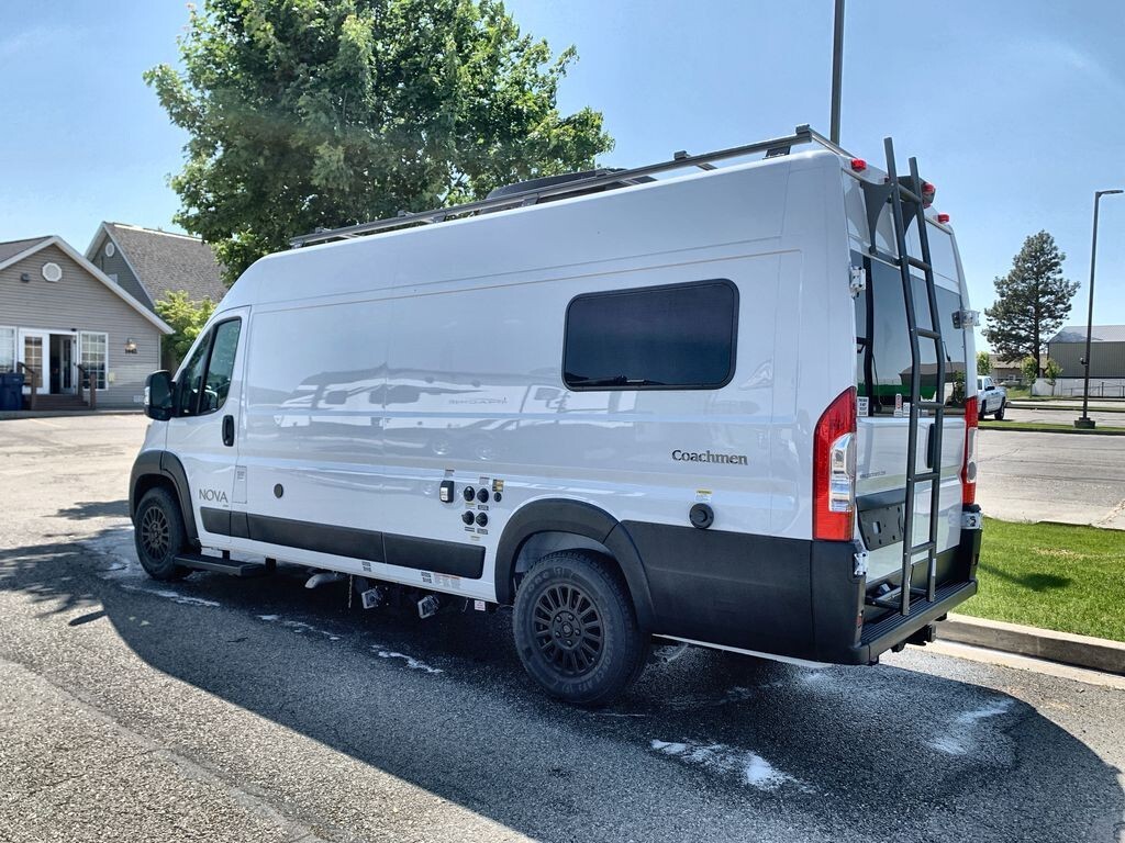 The 2025 Coachmen Nova 20D is a compact and comfortable RV designed for road adventures. Built on the reliable RAM ProMaster 3500 chassis, it offers durability and smooth handling. Its streamlined exterior enhances fuel efficiency and makes it easy to maneuver through city streets and country roads. Inside, the well-designed layout maximizes space, featuring a lounge area with seating that converts into a sleeping area. The kitchen is equipped with a refrigerator, microwave, sink, and two-burner stove, along with ample storage for meal preparation. A wet bath includes a shower and toilet for convenience. Modern technology integration allows control of lighting, climate, and entertainment from a single panel, with a built-in WiFi booster and multiple USB charging ports to keep you connected. The 2025 Coachmen Nova 20D combines thoughtful features and modern conveniences, making it an excellent choice for travelers seeking