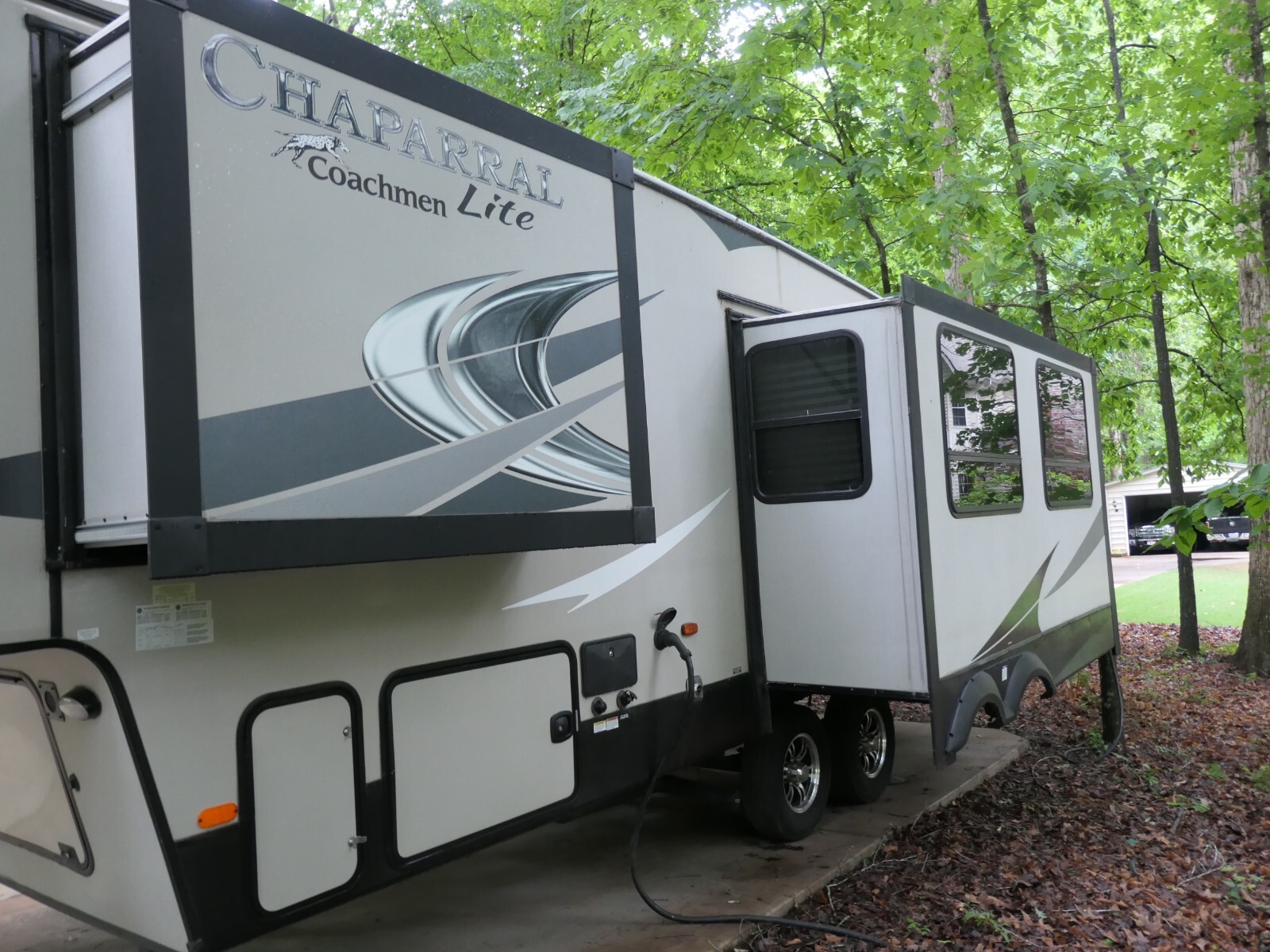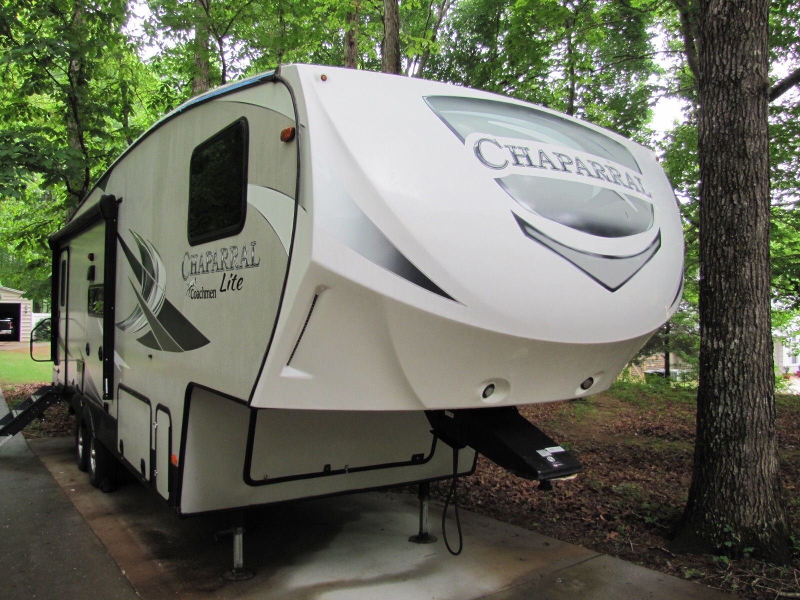 2019 Coachmen Chaparral 25MKS half ton Fifth Wheelcan be towed by most half ton trucks. Dry weight 7,549 lbs., Carrying Capacity 2,251 lbs. Exterior Length 30 foot with 5 new tires. Backup camera, 2 slide outs, 50" TV in living room plus 25“ TV in Bed room, Fire Place, 2 AC, sinks, fridge/freezer, 3 burner stove and oven, microwave, shower with glass doors.Autom. Leveling System. See photos. Fifth Wheel $6,000