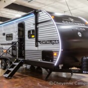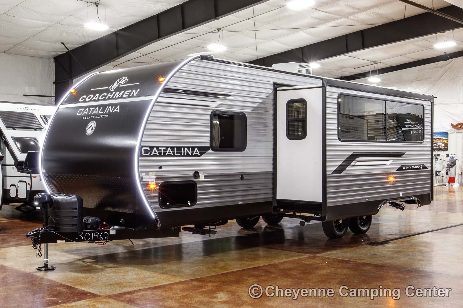 The Catalina Legacy Edition 243BHSCK for sale at Cheyenne Camping Center also includes pleated window shades, ducted heat, 15K ducted GE air conditioner, an enclosed underbelly, filled LP tanks, a 12V deep cycle RV battery, one year complimentary roadside assistance, one year manufacturer warranty and more!