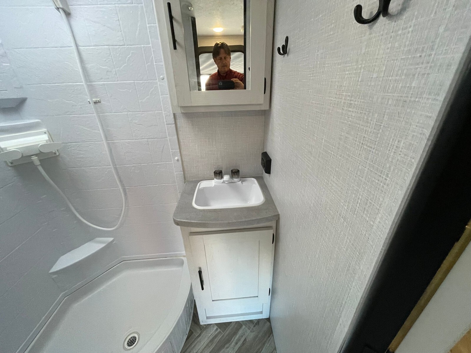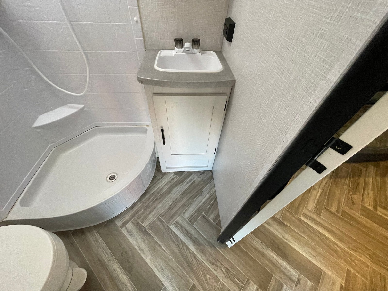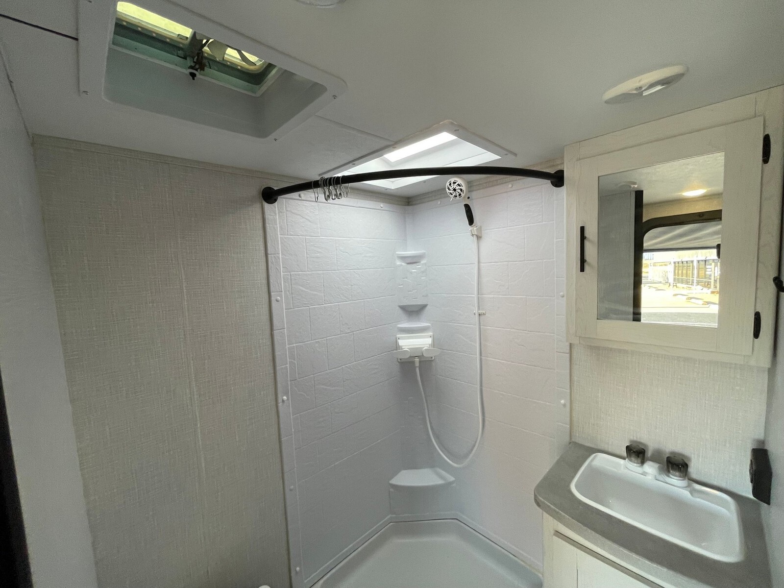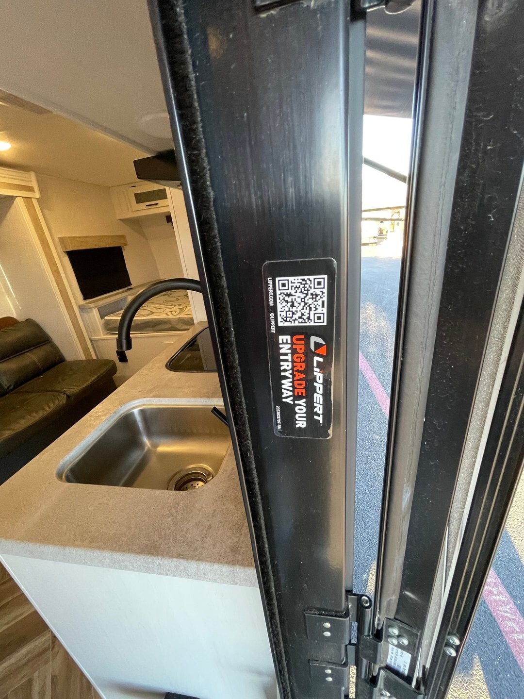 This single-axle, lightweight trailer delivers an ideal balance of easy towing and functional living space. The smart floorplan features a slide-out sofa with removable dining table, a comfortable queen bed, and a spacious rear corner bathroom with walk-in shower and skylight, making it feel more like home on the road. Interior Highlights: