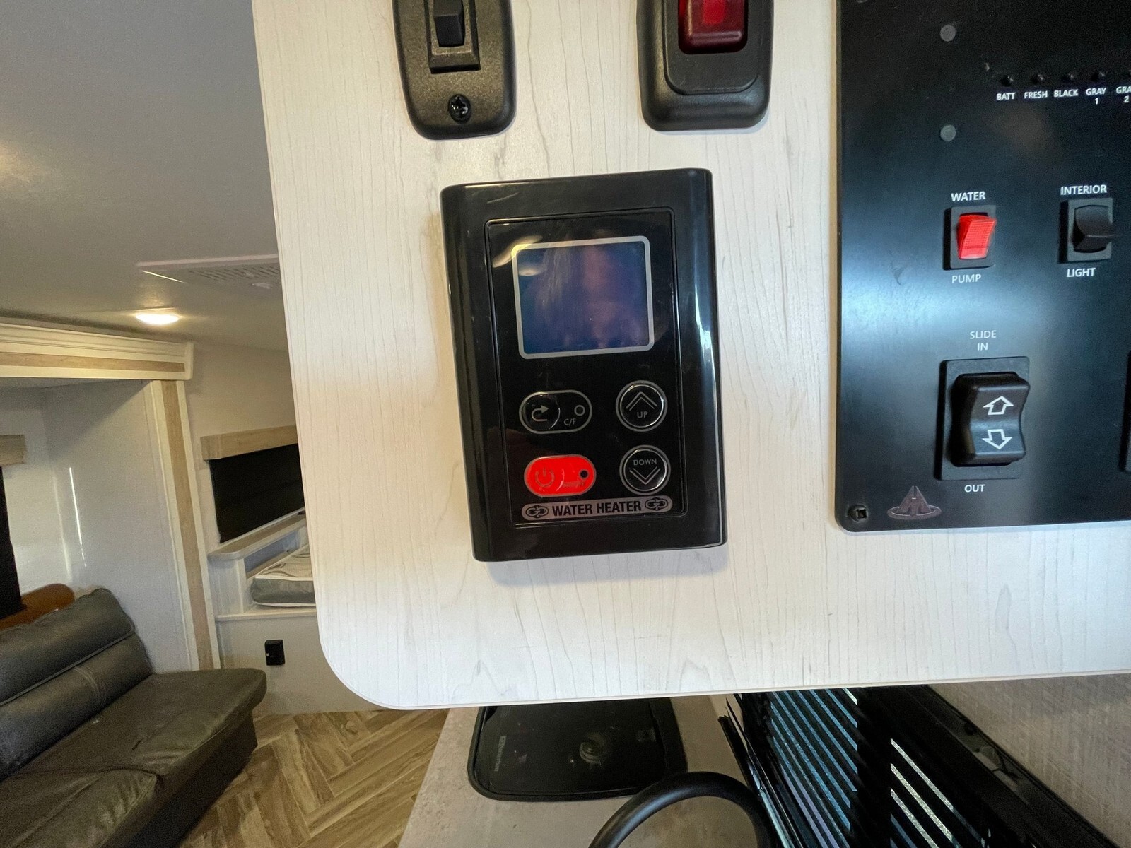 Large 10 cu. ft. 12-volt refrigerator - generous for a single-axle trailer