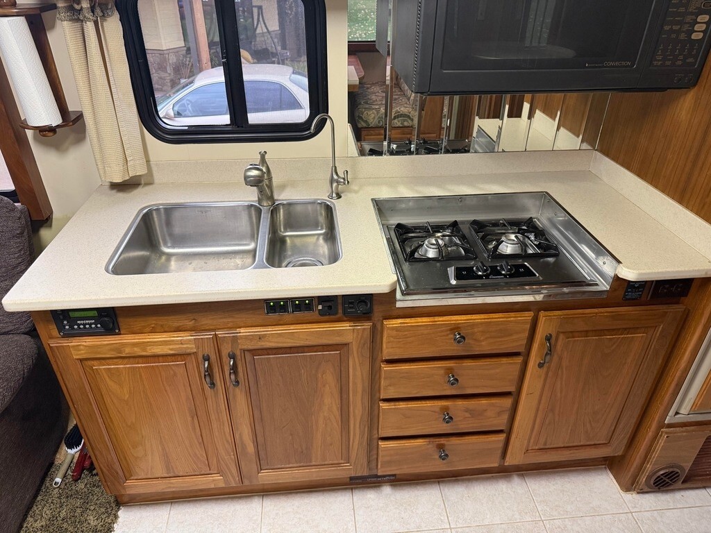 1998 Country Coach Intrigue 36’ Class A Diesel For Sale in Valley Springs, SD 57068 This Intrigue is powered by a 330HP Cummins diesel engine and an automatic transmission with 119,714 miles. The overall length is 36 feet and comes equipped with a large 14-foot slide-out, a 16-foot awning, 2 A/C units, a diesel generator, solar, a washer/dryer, and plenty of room to sleep 4. This unit has been non-smoking and well-maintained. Kitchen/Living Area Features Walnut Cabinetry Solid-Surface Countertops 2-Burner Stovetop with Cover Convection Microwave Oven Mid-Size Fridge/Freezer