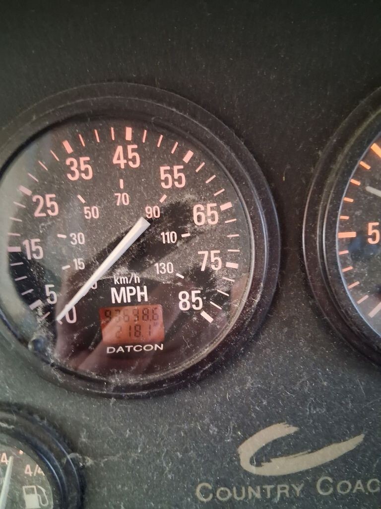The odometer currently reads 93,538 miles, which is excellent for a diesel coach built for long-distance touring. This coach has been well maintained with several key systems serviced or replaced in recent years.