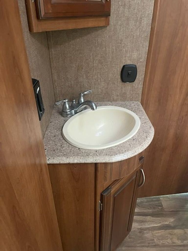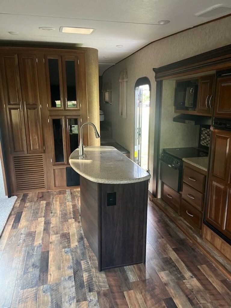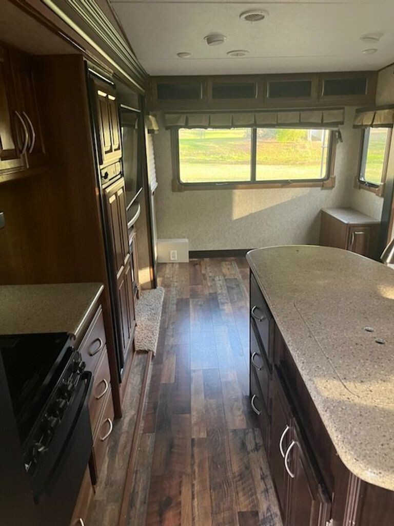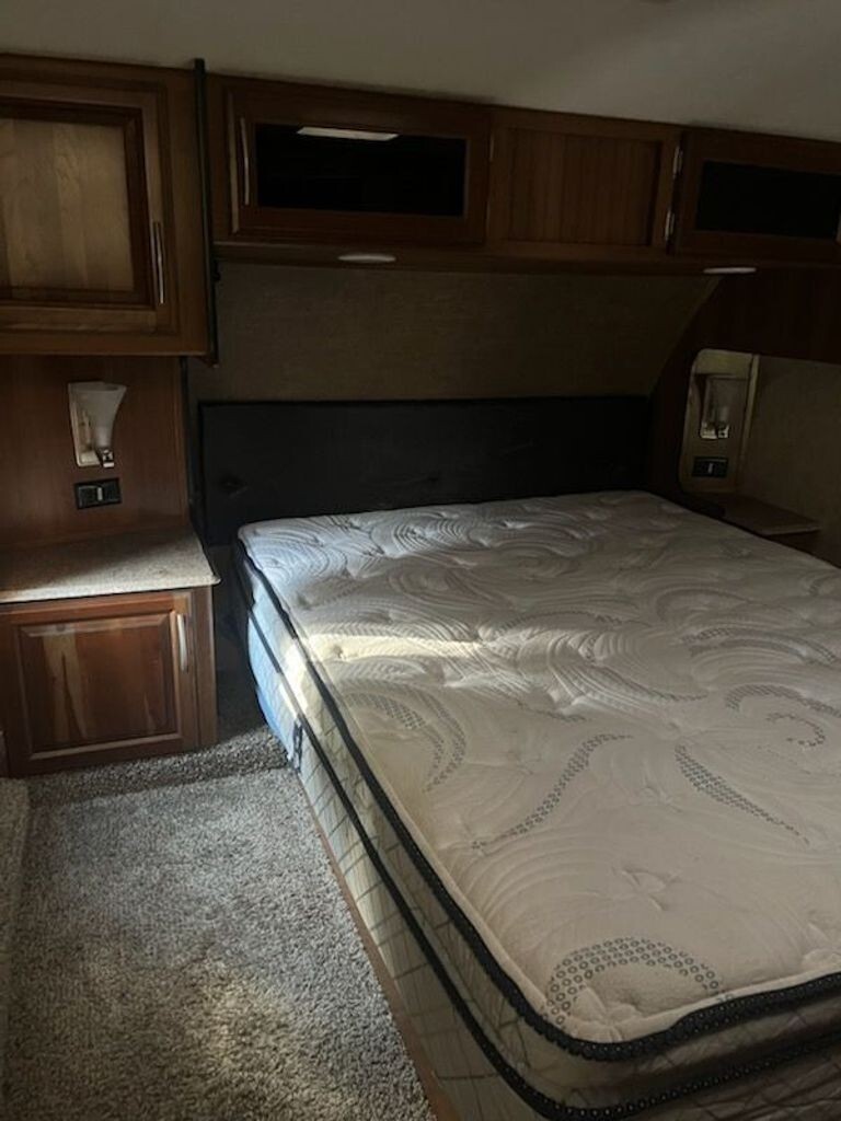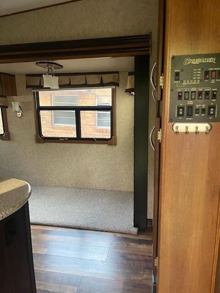 The 2016 Cruiser RV Crusader 295RST is a beautifully designed rear living fifth wheel that delivers residential comfort, upscale features, and a spacious layout in an easy-to-tow 31 11 package. Built for extended stays and weekend escapes alike, this model is an excellent choice for couples or small families looking for a premium camping experience without stepping into a larger coach. Inside, youre welcomed by a warm and inviting rear living area with opposing slide-outs that create an open, residential feel, featuring plush theater seating, a tri-fold sofa, and a free-standing dinette-all centered around an entertainment center with a fireplace. Large panoramic windows provide plenty of natural light and great campsite views. The kitchen is both stylish and functional, highlighted by a solid-surface island, along with a 3-burner range with oven, microwave, mid-size refrigerator, pantry, and abundant cabinetry for all your cooking and storage needs. Upstairs, the private master suite offers a comfortable queen bed, wardrobe storage, and overhead cabinets, while the spacious bathroom includes a large glass-door shower, vanity, linen storage, and porcelain toilet for a true residential feel. Built with quality in mind, the Crusader features aluminum framing, laminated sidewalls, and a heated, enclosed underbelly for extended-season camping, along with generous holding tanks for longer stays. Outside, youll find pass-through storage, a power awning, and durable construction designed for life on the road. Whether youre planning a weekend getaway or an extended stay, the 2016 Crusader 295RST offers the perfect balance of comfort, style, and functionality.