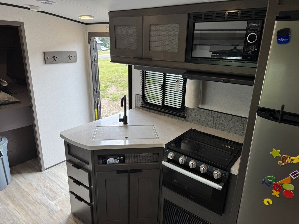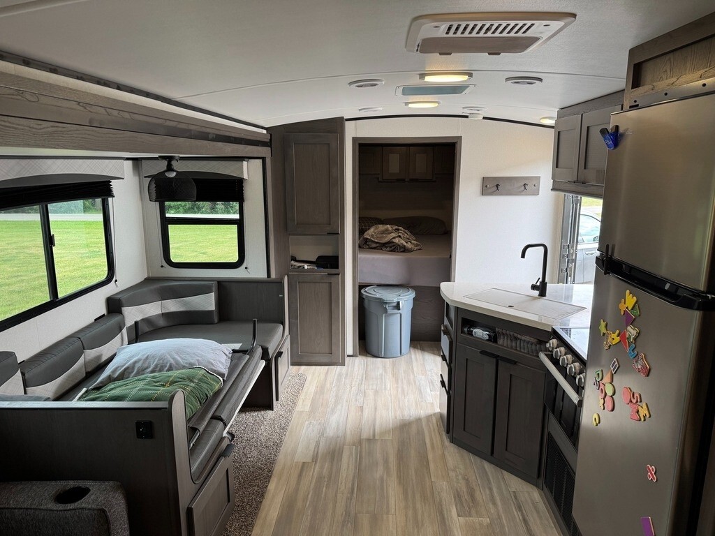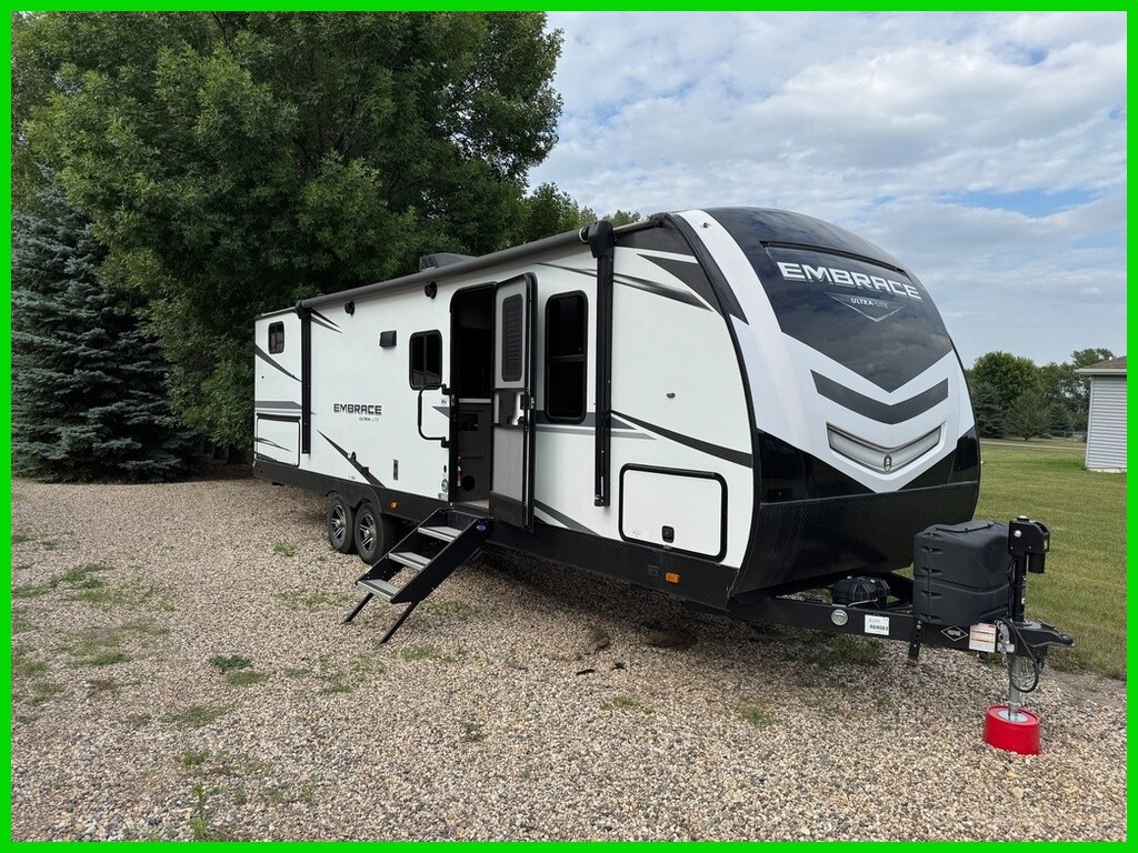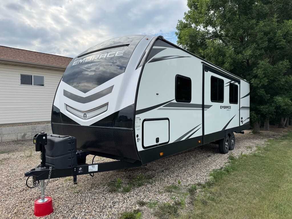 2021 Cruiser Embrace EL275 Excellent condition 2021 Cruiser Embrace EL275 Ultralite travel trailer. Stored under cover and used sparingly. Sleeps 6 with double bunks and a new camper king mattress. Includes sway bars and stabilizer hitch, electric jacks and awning with LED lights, two TVs, stainless appliances, outdoor kitchen, fireplace, and Bluetooth sound. Recently winterized, comes with accessories, hoses, adapters, and leveling gear. Ready to camp. Located in Minot, ND 58701 For more information, please call 833-265-6113 and mention ID 85181