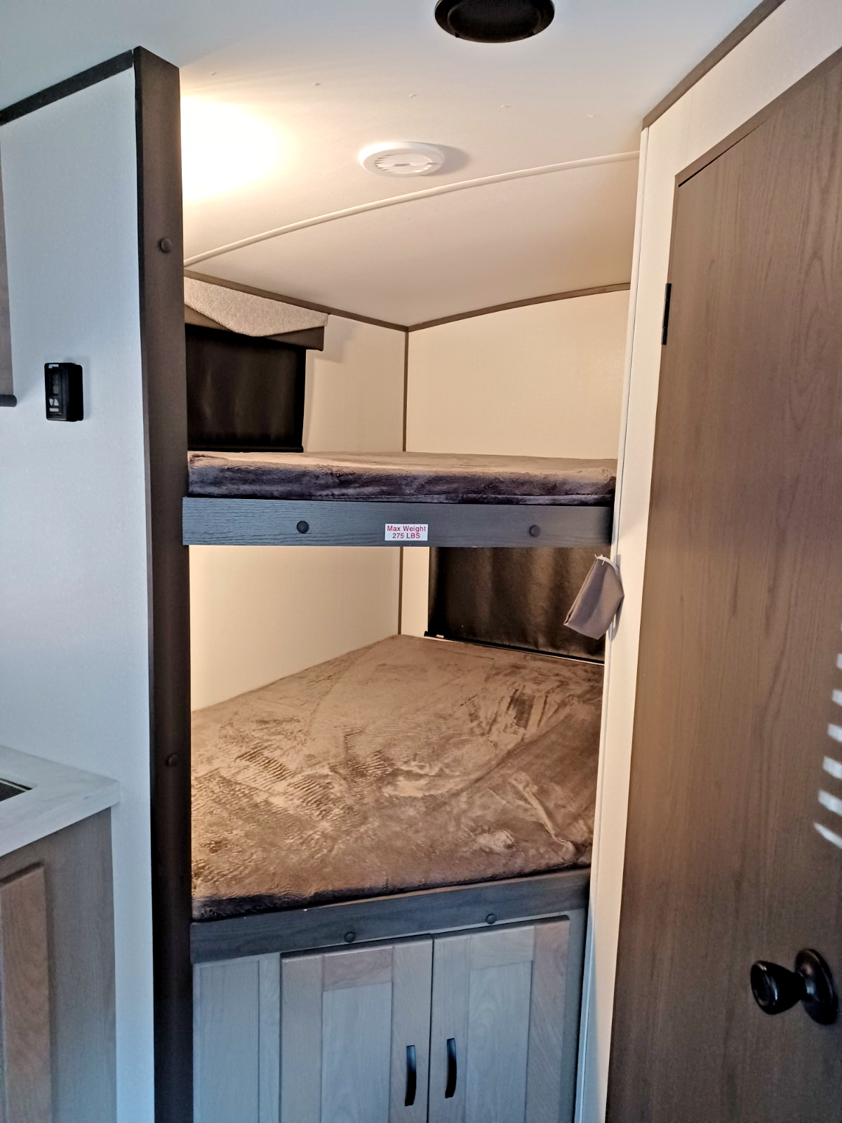 In very good condition and camper ready. Comes with 72x80 King size bed slide system in master bedroom, Serta Comfort Mattress w/ Upgraded Bedding, two rear bunk beds, dinette sleeper and a pull-out sleeper sofa. 50-amp service, 40" Fire LED TV, 10 Cubic Feet refrigerator, inside/outside Bluetooth Stereo radio system, microwave, oven with recessed glass cover. Spacious shower, toilet and vanity in bathroom. Climate control system for year-round comfort. Outdoor, twenty feet power awning, easy to use electric stabilizer jack system and a power tongue jack. Dual ducted A/C system. (15,000 BTU Main A/C. Heat Pump with Digital Control, Tinted UV protected windows and a 30,000 BTU furnace. w/forced tank heating. Wi-Fi/LTE prep, Solar prep, Back-up camera prep, outside TV prep, 40+cu.ft. Pass Thru Storage, Goodyear Tires, Heavy Duty Axles, Seamless Countertop Nightstands, Solid Surface Kitchen Countertop, Deep Bowl Stainless Steel Kitchen Sink, High Rise Kitchen Faucet w /Pull -out Sprayer, Hardwood Cabinet Doors, Hidden Dinette Seat Storage, Black-out Roller Shades Throughout, Seamless Bathroom Countertops, Porcelain Toilet, High Grade Vinyl Flooring and many more items not listed.