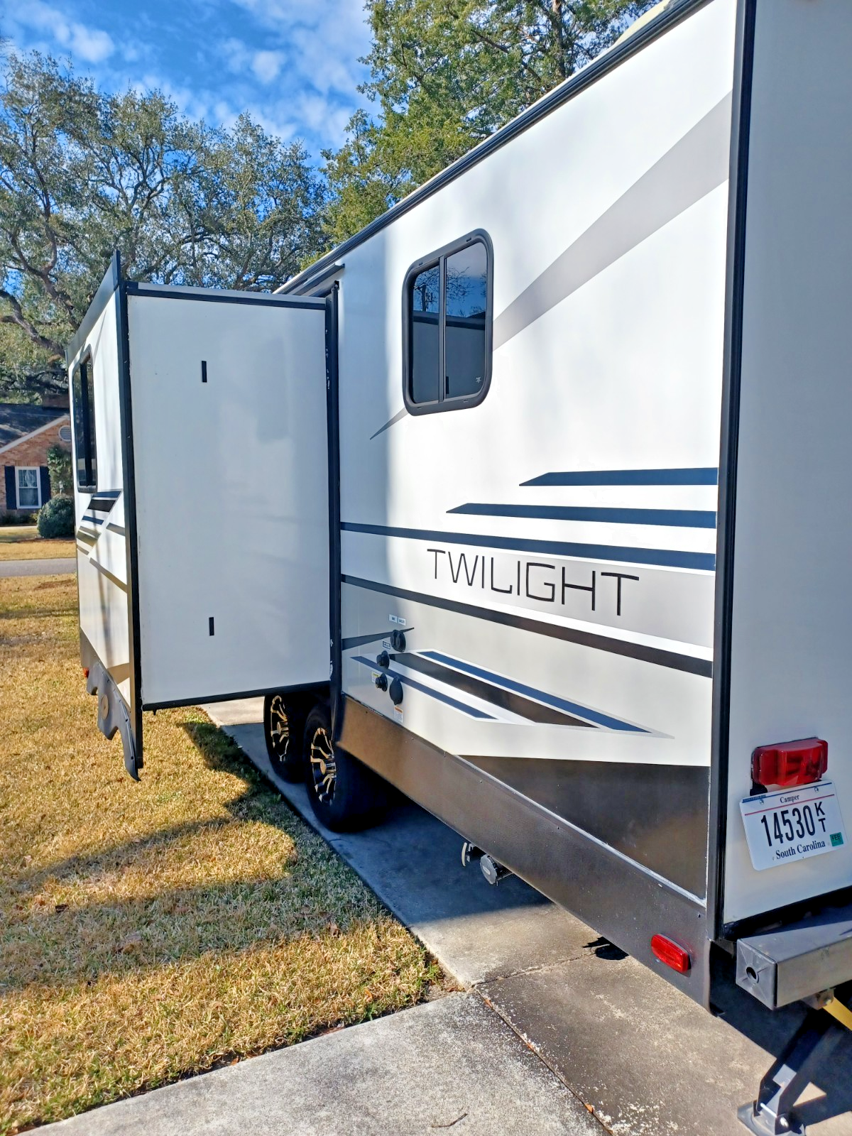 Comes camper ready with sewer hoses, water hoses, water filter, water regulator, surge protector, black water clean-out system, outside water spray, Awning LED Lighting, Upgraded three burner Grill and many additional extras.