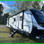 The whole family can camp comfortably in this travel trailer! The kids can sleep on the set of double bunk beds and you can sleep on the front queen bed with drawers underneath to store your necessities. The booth dinette could also transform into an extra sleeping space when you aren't using it to enjoy a meal prepared with the two burner cooktop and 8 cu. ft. refrigerator. Everyone can stay squeaky clean with the shower in the rear corner bathroom. Don't leave any outdoor gear behind when you have a front exterior full pass-through storage area for it all!