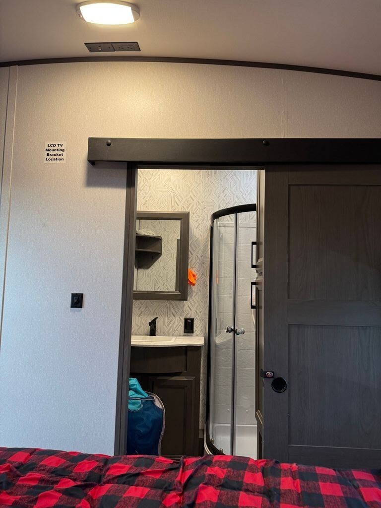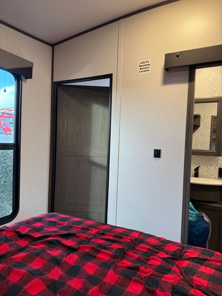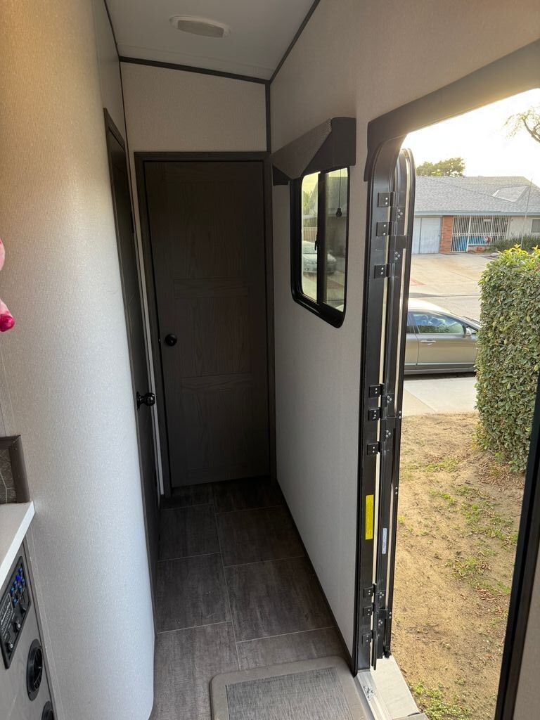 The private master bedroom offers a comfortable retreat with ample storage, while the bathroom is equipped with modern fixtures and a spacious shower to keep you refreshed on the road.