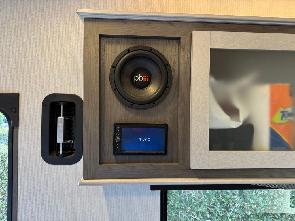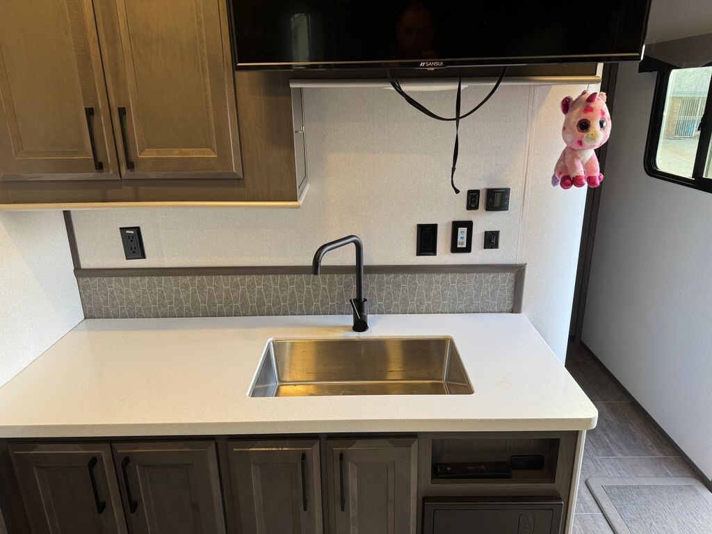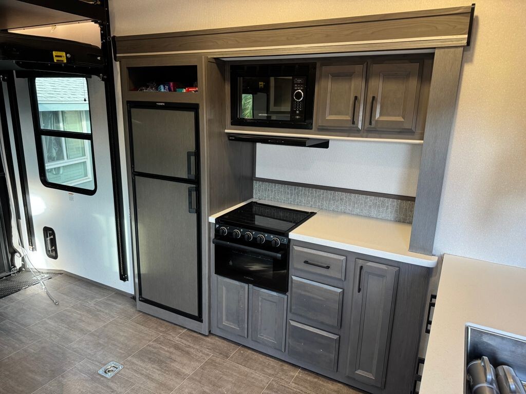 Inside, the Stryker 2613 offers a thoughtfully designed layout that maximizes comfort and functionality. The fully equipped kitchen features a refrigerator, stove, microwave, generous counter space, and abundant storage, making meal preparation simple whether you're on a weekend getaway or an extended trip. The inviting living area provides comfortable seating for relaxing after a day of adventure.