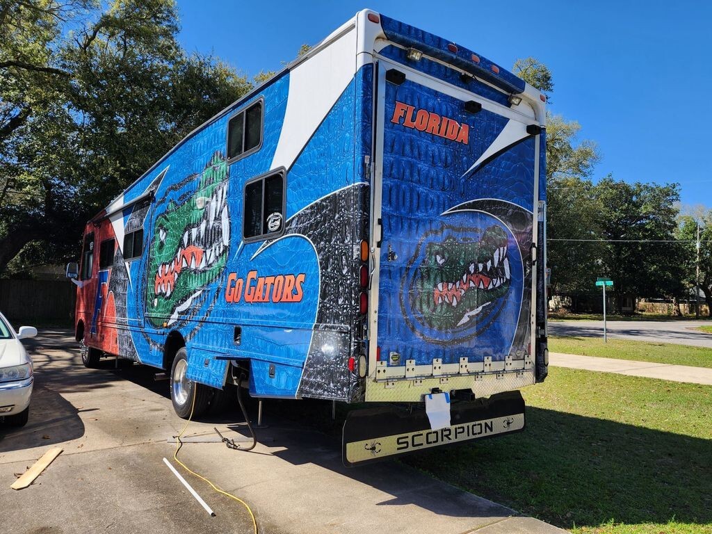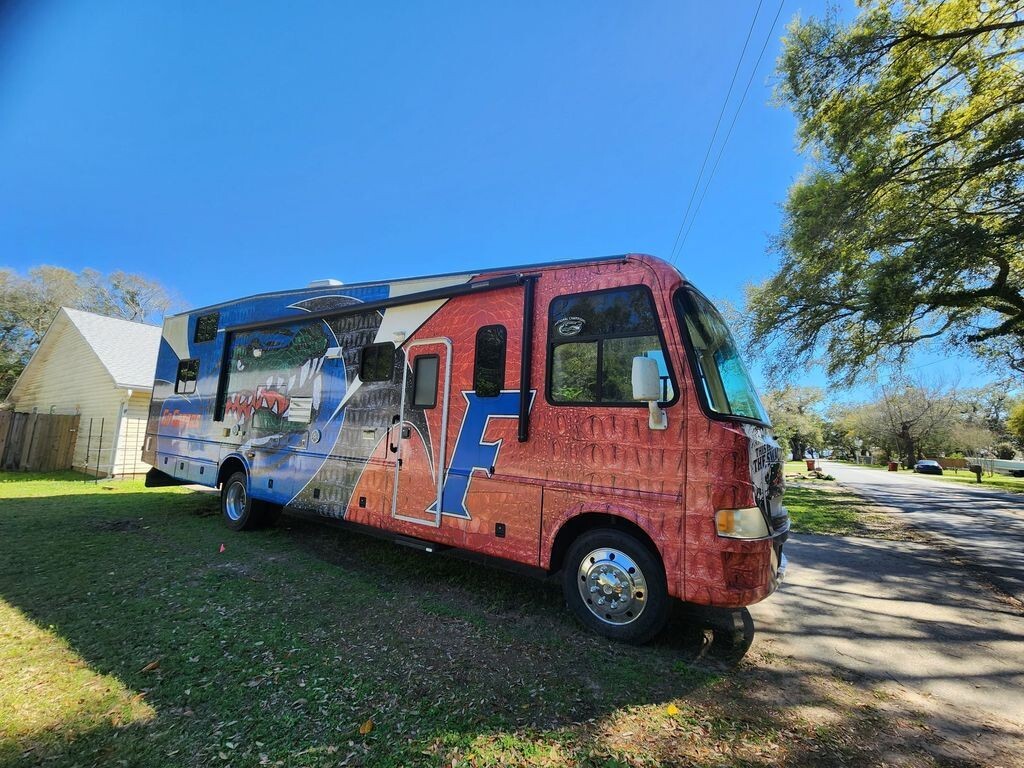 Turn heads wherever you travel in this one-of-a-kind 2010 Damon Outlaw Scorpion Edition, a rare luxury Class A toy hauler motorhome built by Damon Motor Coach and finished in a striking Florida Gators custom exterior wrap. Inspired by the iconic colors of the Florida Gators, this coach blends bold personality with premium craftsmanship, making it perfect for motorsports enthusiasts, tailgaters, and adventure seekers alike.