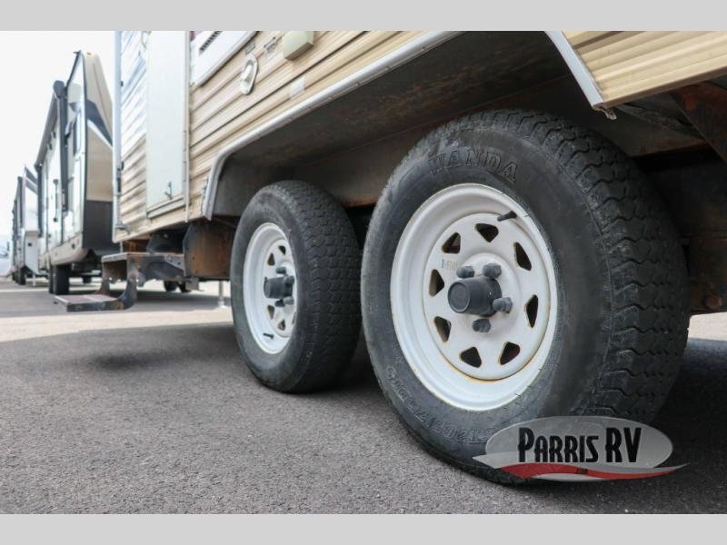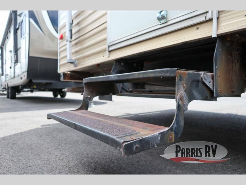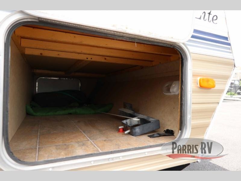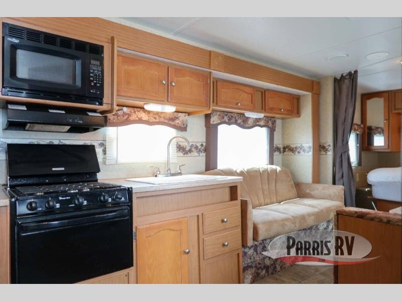 Single Slide, Rear Bath w/Tub, Closet w/Shelf, Lav., Slide Out 3 Burner Range/Double Kitchen Sink/Sofa Bed, Refrigerator, Booth Dinette, TV/Overhead Cabinet, TV Tray, Front Queen Bed w/Storage Plus, Nightstand/Shirt Closet, and More.
