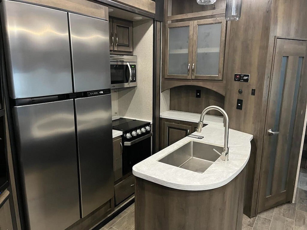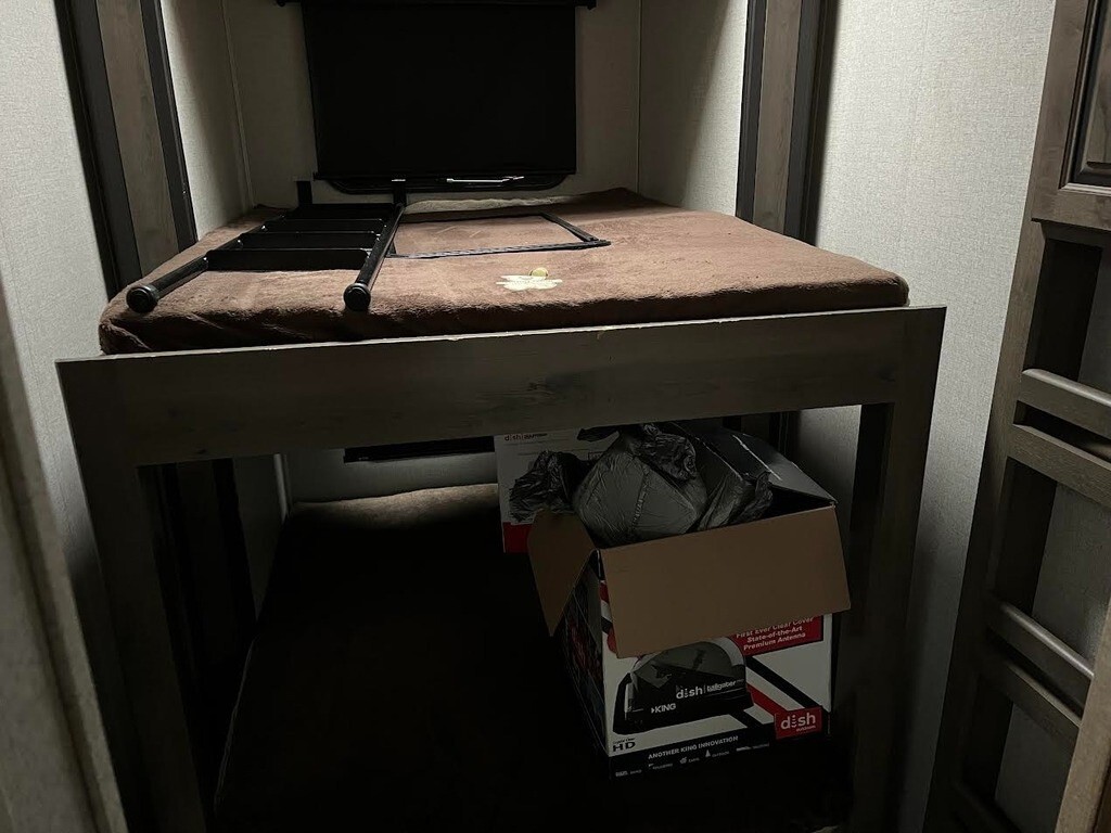 “This 2020 Dutchmen 4205 Toy Hauler is a spacious fifth wheel designed for comfort, versatility, and family fun. It features four slide-outs, three air conditioning units, and self-leveling for easy setup. Inside you’ll find a full-size refrigerator, bunk beds, a loft, washer and dryer, and sleeping accommodations for 8–10 people. Entertainment is covered with three TVs, including one mounted outside for relaxing evenings under the awning.