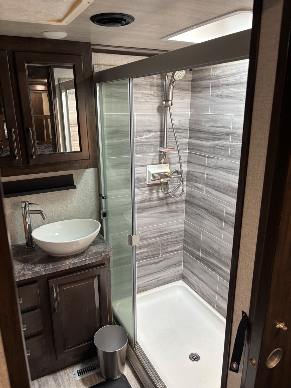 The 2021 Dutchmen Voltage 4225 Fifth Wheel Toy Hauler is a spacious and well-equipped RV designed for traveling and camping. With a sleeping capacity for 7 people, over 100 gallons of water capacity, and 3 air conditioners, it provides comfort and convenience for extended trips. This toy hauler also features a gas fuel type, 3 slide outs, and 3 awnings for added versatility and protection from the elements. The Dutchmen brand ensures quality and reliability, making this fifth wheel a practical and enjoyable choice for outdoor adventures.Features and specs: