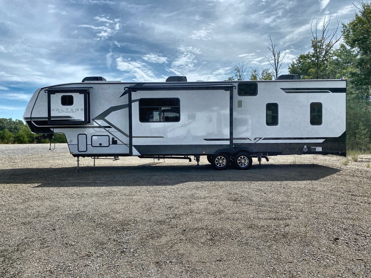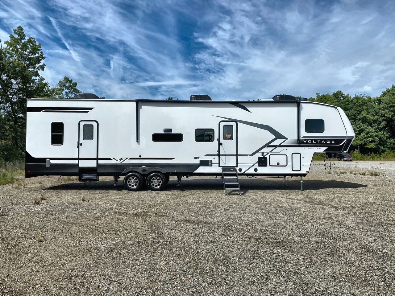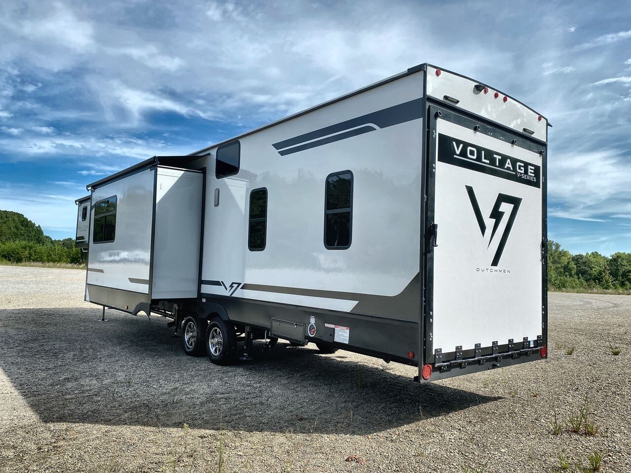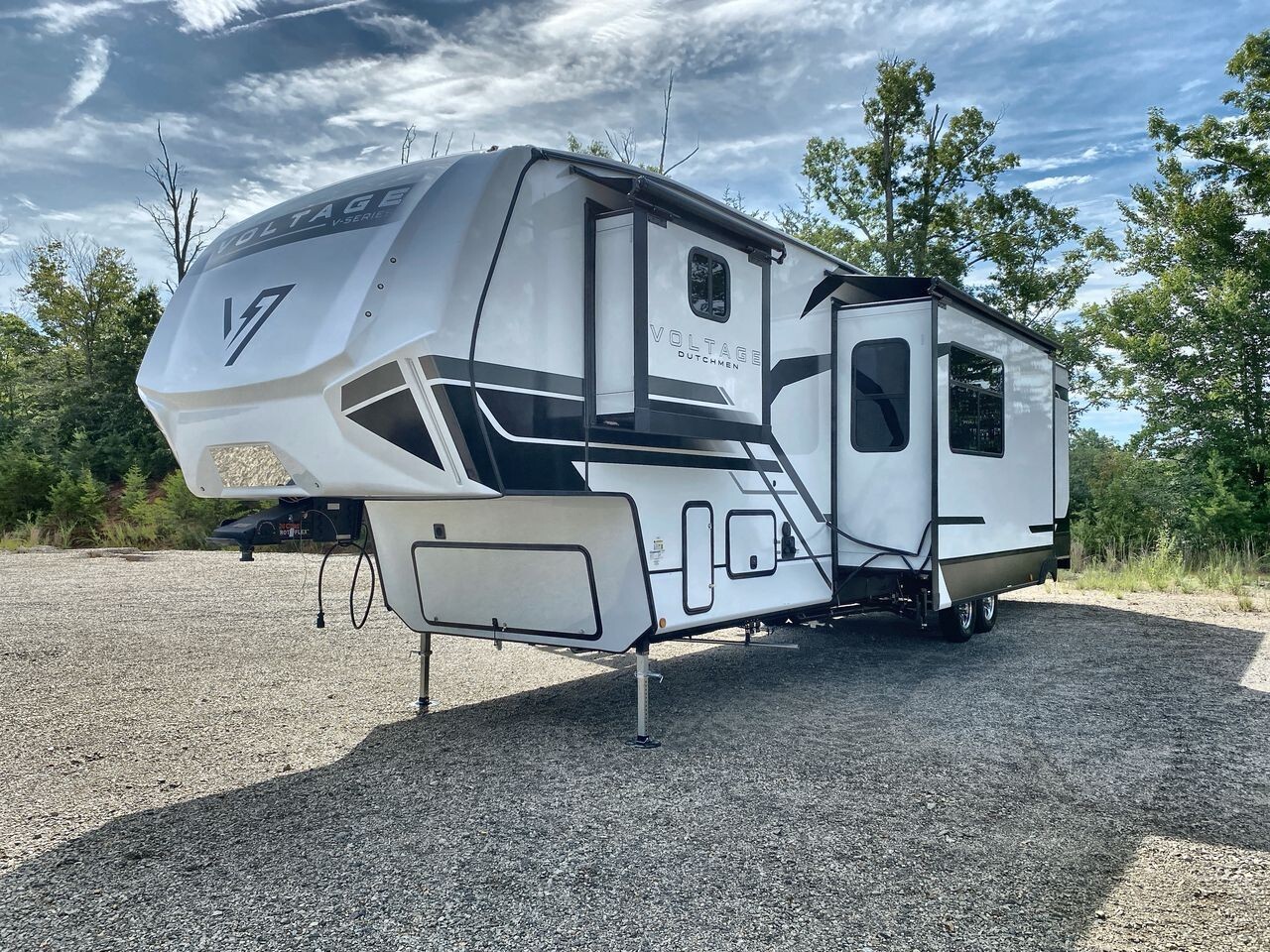 The 2025 Dutchmen Voltage V-Series 3800 is a versatile and stylish fifth wheel toy hauler designed for adventurous travelers. This RV combines comfort, convenience, and cutting-edge technology to deliver an exceptional camping experience.
