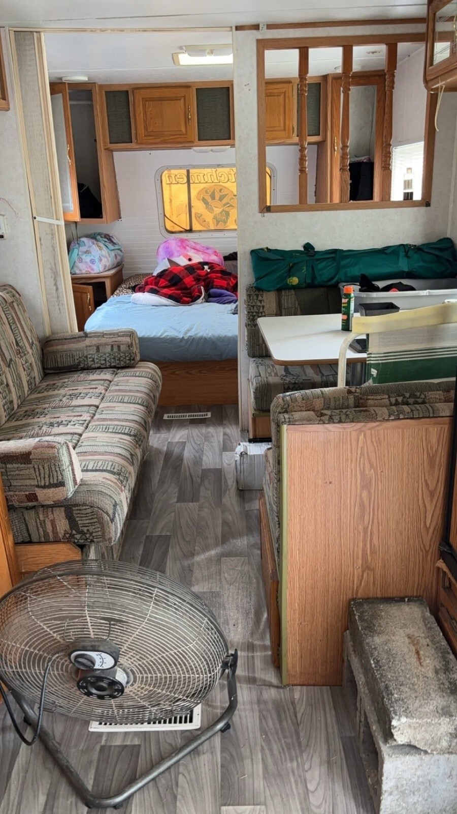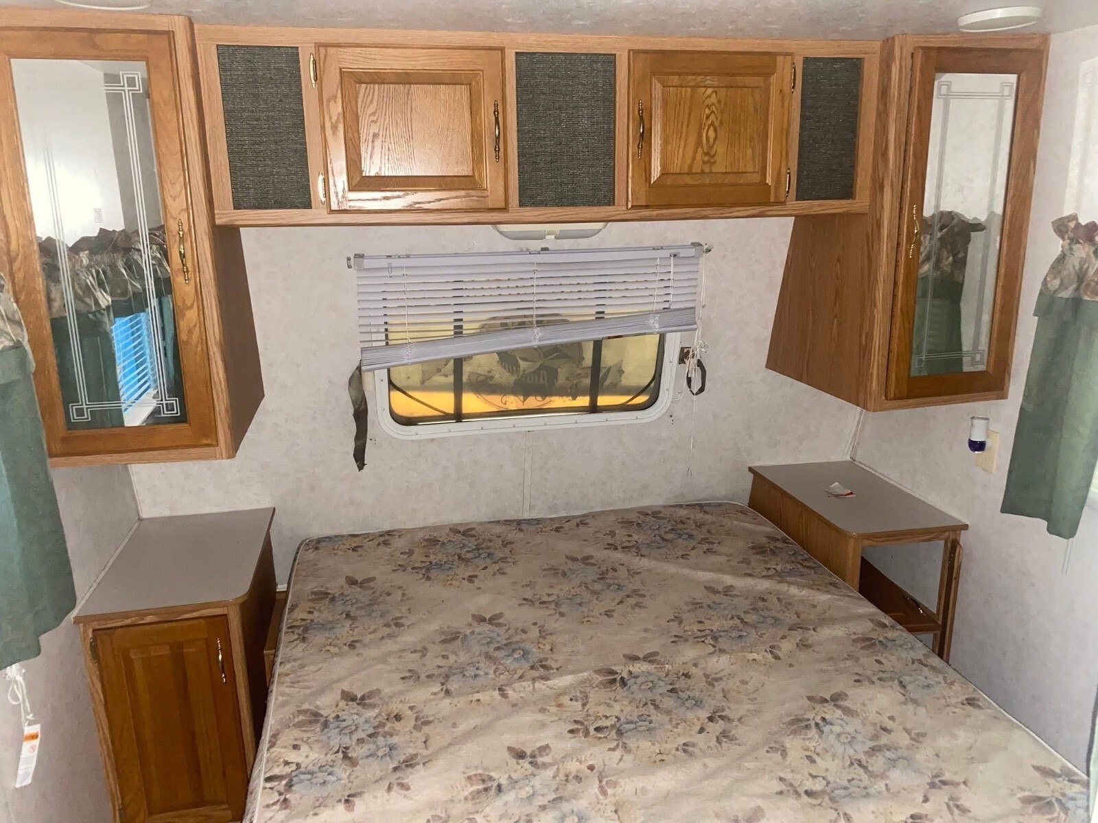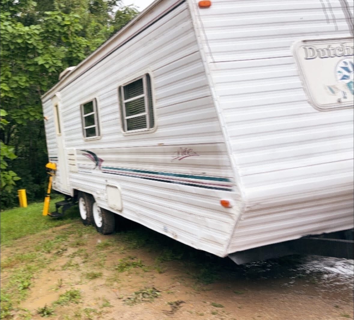 The camper is a 1999 Dutchmen travel trailer with a sleeping capacity of 6 people. It includes leveling jacks, an awning, and is listed as being in clean condition. The camper is made in the United States and does not have slide outs. Perfect for camping trips or as a mobile home for temporary stays, this camper offers a comfortable and spacious living space while on the road. Sold-As-Is