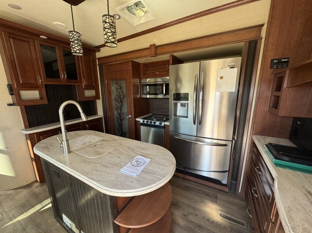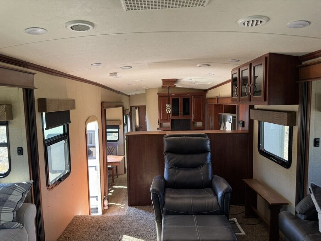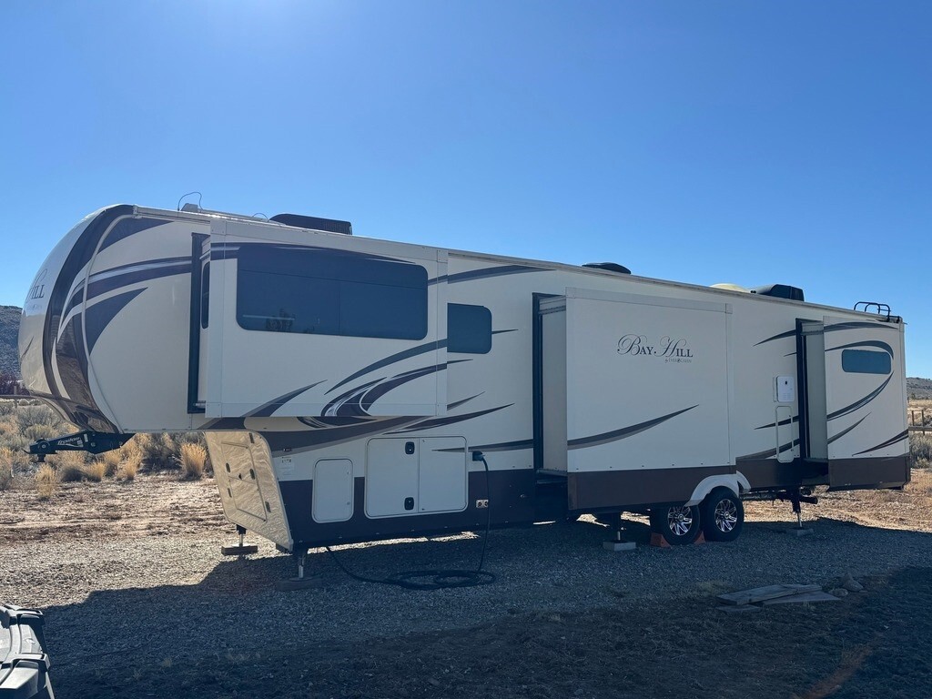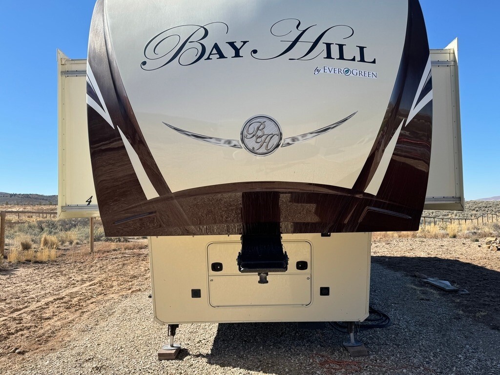 2015 EverGreen RV Bay Hill 379FL Fifth Wheel for Sale in Elko, NV 89801 42’ Luxury Front Living – 5 Slides – Auto Leveling Up for sale is our well-maintained 2015 EverGreen RV Bay Hill 379FL fifth wheel. This is a high-end, spacious 42-foot luxury camper designed for comfort, extended stays, and full-time living. With five slide-outs and a sought-after front living floorplan, this RV offers residential-style space and features throughout. Layout & Comfort The 379FL features a large front living area with opposing slide-outs, fireplace, and entertainment center. Originally it came with two sleeper sofas — we remo