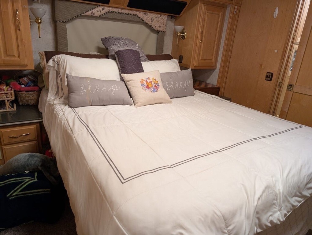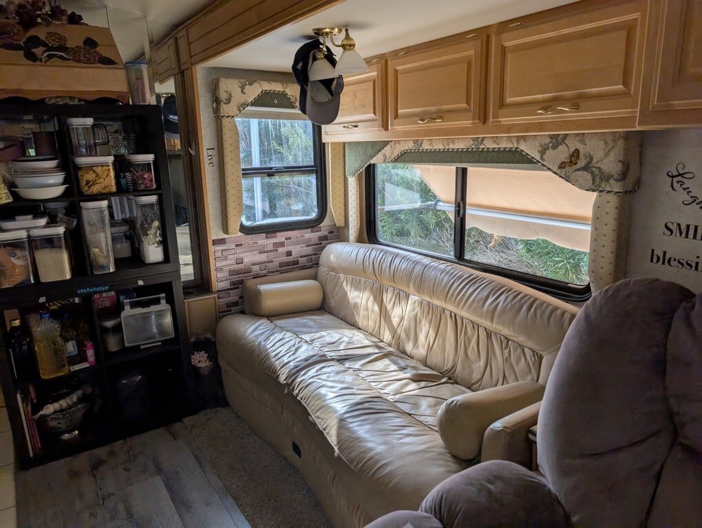 “This rig comes with a brand-new awning and fresh window shades that really tighten up the look and comfort. It also includes a tow bar and a VisiBrake setup for your tow car, making it road-trip ready right out of the gate. Everything’s been kept up and thoughtfully updated so the next owner can just hop in and go.”