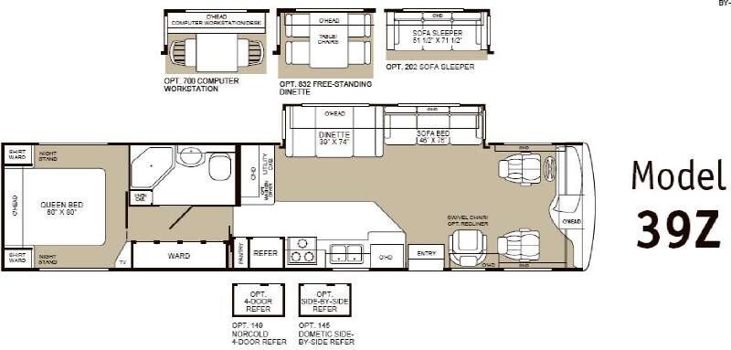 Single Slide Bounder Diesel w/Rear Queen Bed, Shirt Closets Above Nightstands, Wardrobe, TV, Side Isle Bath w/Angle Shower, Lav., Linen Cabinet, Pantry, Refrig., Opt. Side-By-Side or 4-Door, 3 Burner Range, Double Kitchen Sink, Swivel Chair or Opt. Recliner, Sofa Bed & Booth Dinette Slideout or Opt. Sofa Sleeper, Table & Chairs or Computer Workstation, 2nd Utility Cabinet & More.