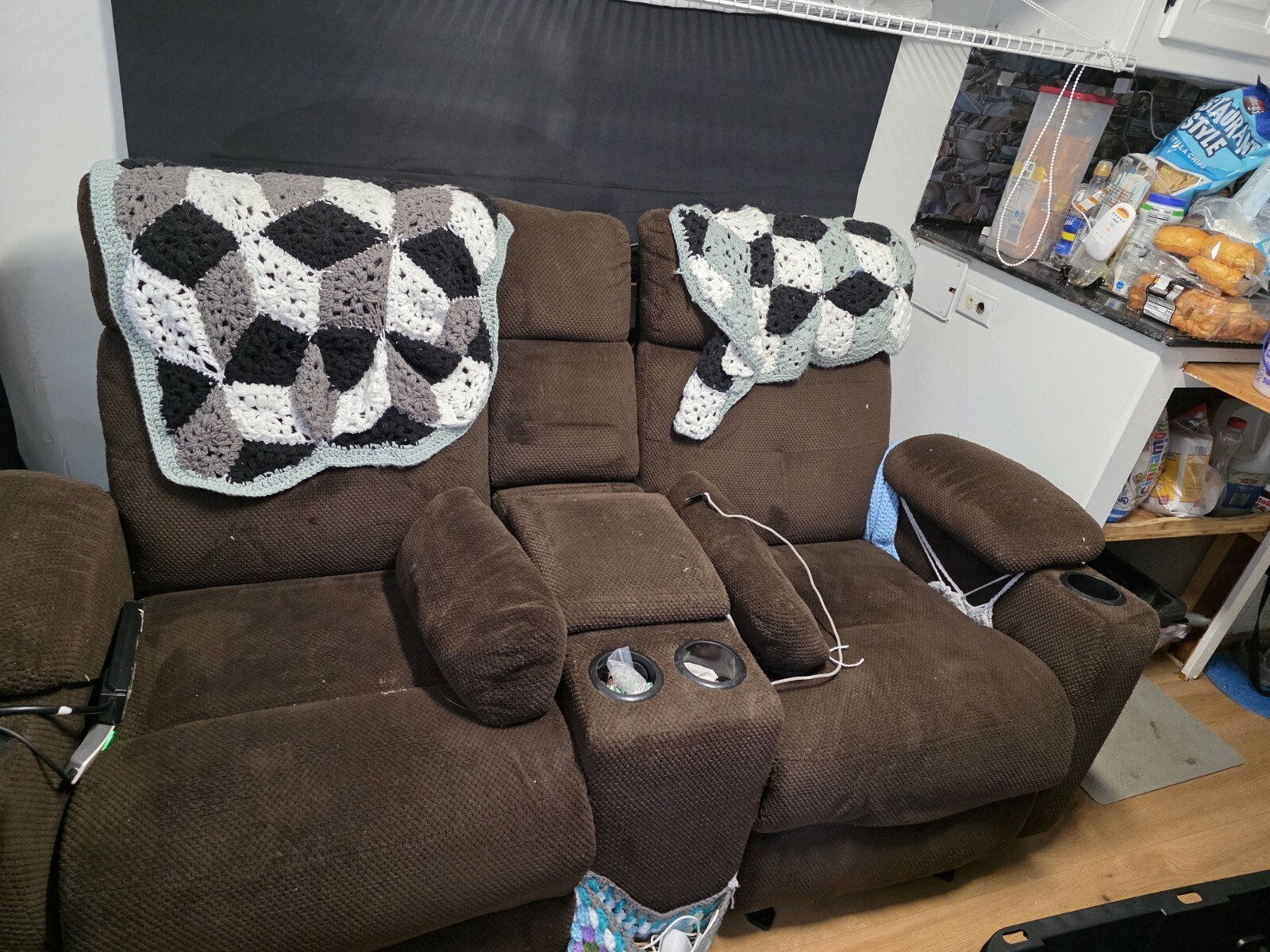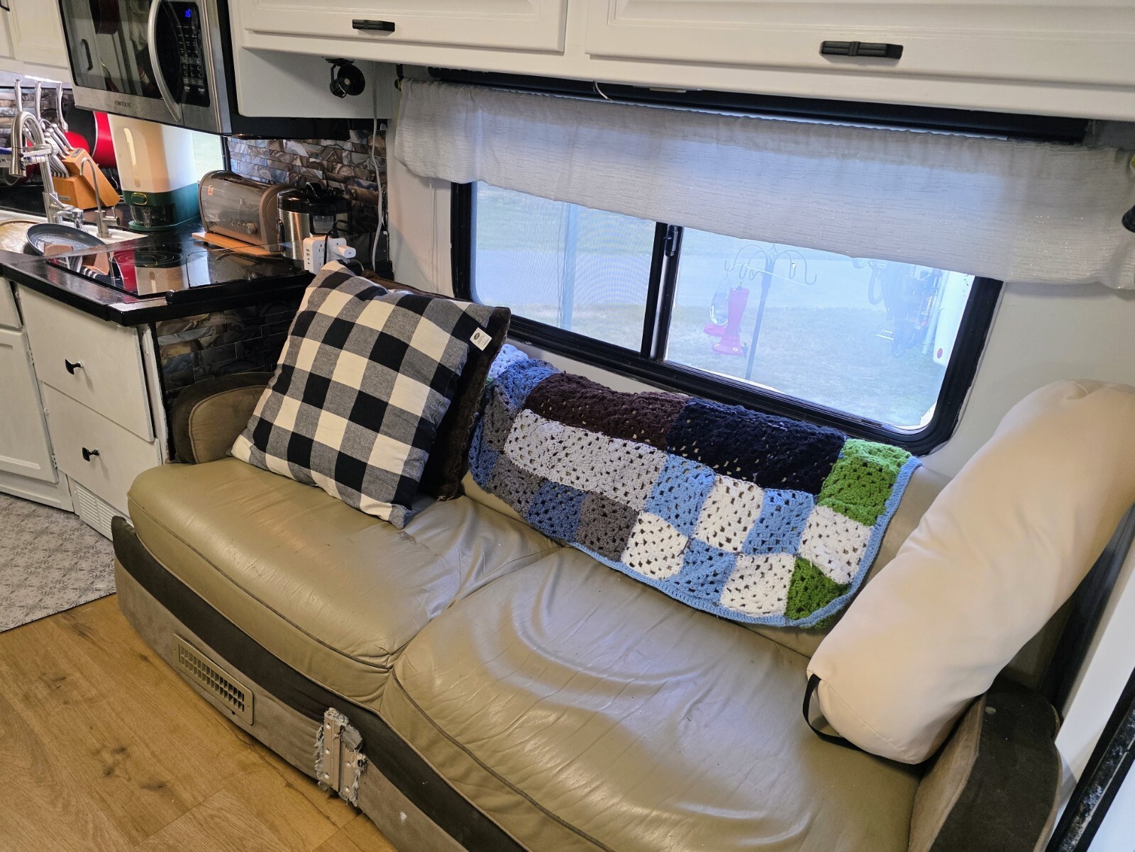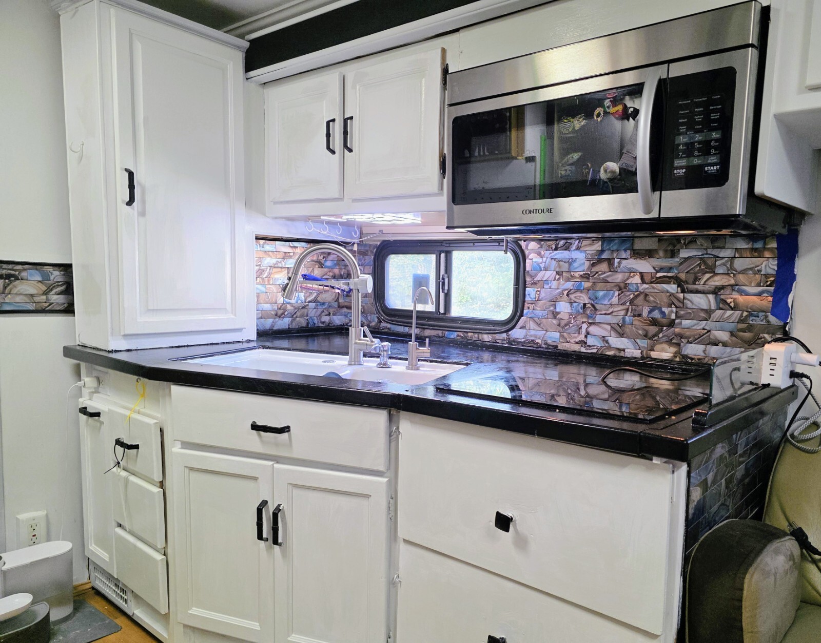 2 new central AC units, New residential refrigerator, induction cooktop, & convection microwaveUpdated shower & sink Modern black & white interior with wood plank flooring, dual recliner, couch sleeper, queen bed, & LED lighting 2 flatscreen TVs & Starlink satellite