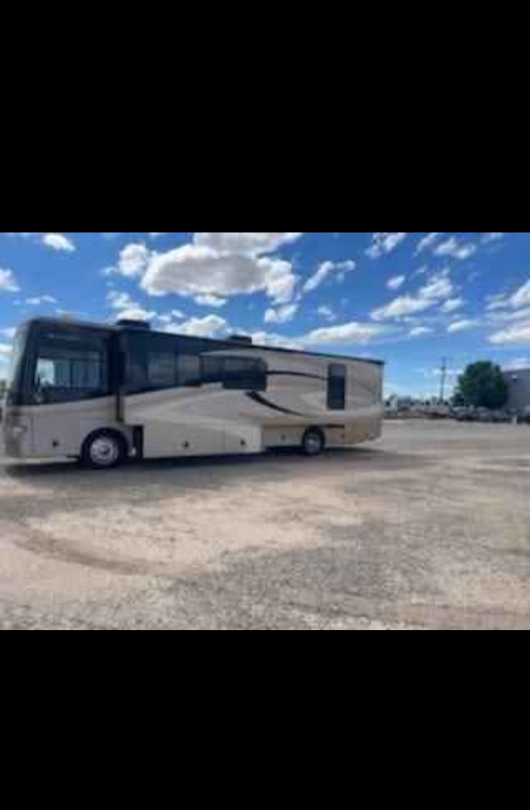 The 2008 Fleetwood Discovery is a Class A RV with a sleeping capacity for 6 people. It has a length of 40 feet and is equipped with 3 slide outs, 2 air conditioners, and 2 awnings. This diesel RV also includes leveling jacks and has a clean vehicle title. With a mileage of 24,111, this Fleetwood model offers comfortable and convenient travel accommodations for a group of travelers. Comes with a new full size fridge, washer/dryer, new front tires, tow bar, 7.5 kw generator, paint is in excellent shape.