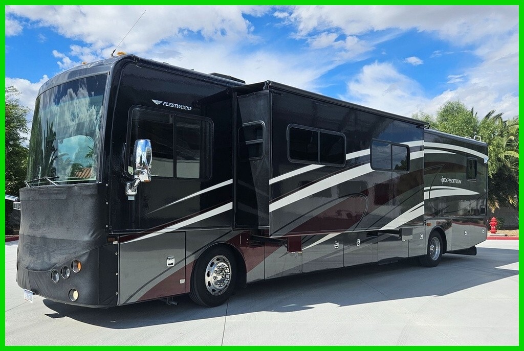 2014 Fleetwood Expedition 40X A fully loaded, upgraded 2014 Fleetwood Expedition 40X with 3 slide outs (Living/kitchen both sides and bedroom). Rear diesel engine model Cummins ISB 6.7 360HP; Allison 3000 automatic transmission. 55,600 miles as of 11/2025. Two new starter batteries installed 1/2026. Ready for boondocking, exploring our country or living in year-round. Front mounted Onan GENERATOR 8HDKAK-1046N Quiet diesel 8000 watts 66.6 amps (550 hours); Regularly maintained. 5375-watt solar panels with Magnum Energy Inverter also known as Sensata Technologies Model #MS2812. Charge Controller is a Magnum PT100 all installed by Briter Products, South Bend, Indiana (2022). 6100-amp Lithium-Ion batteries. 3 roof-top air conditioners; front and rear auto wheel balancers, Front and rear KONI shocks (2021. Remco 5.3gpm water pump; Lippert hydraulic levelers with snap pads. This unit is set up for Blue Ox towing & Air Force One braking system. Super Steer sway bars; heavy duty bell crank; Safety Plus steering bar and anti-sway motion control units front and rear. Rear mounted Fleetwood rock guard. South Wire 50amp surge guard model #34950. Power Watchdog 50-amp Smart Surge Protector Model# PWD50-EPO. Both are used from pedestal to RV. Electric mirrors with cameras visible on screen at dash. Cameras also activated with turn signals and from rear in Reverse mode. Electric awnings on side and over entry door. 100-gallon fuel tank; 100-gallon freshwater tank; 75-gallon grey water holding tank; 50-gallon black water holding tank; 38-gallon mounted propane tank.